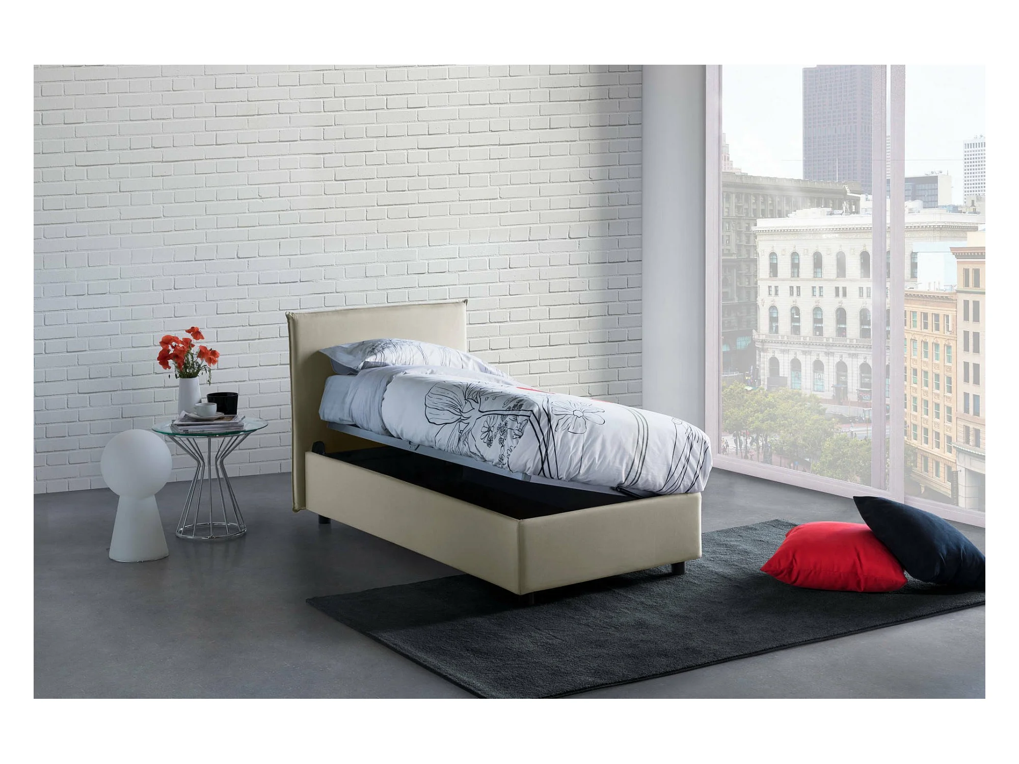Lit simple Candida, Lit coffre avec revêtement en tissu, 100% Made in Italy, Ouverture latérale, adapté pour matelas 80x190 cm, Beige