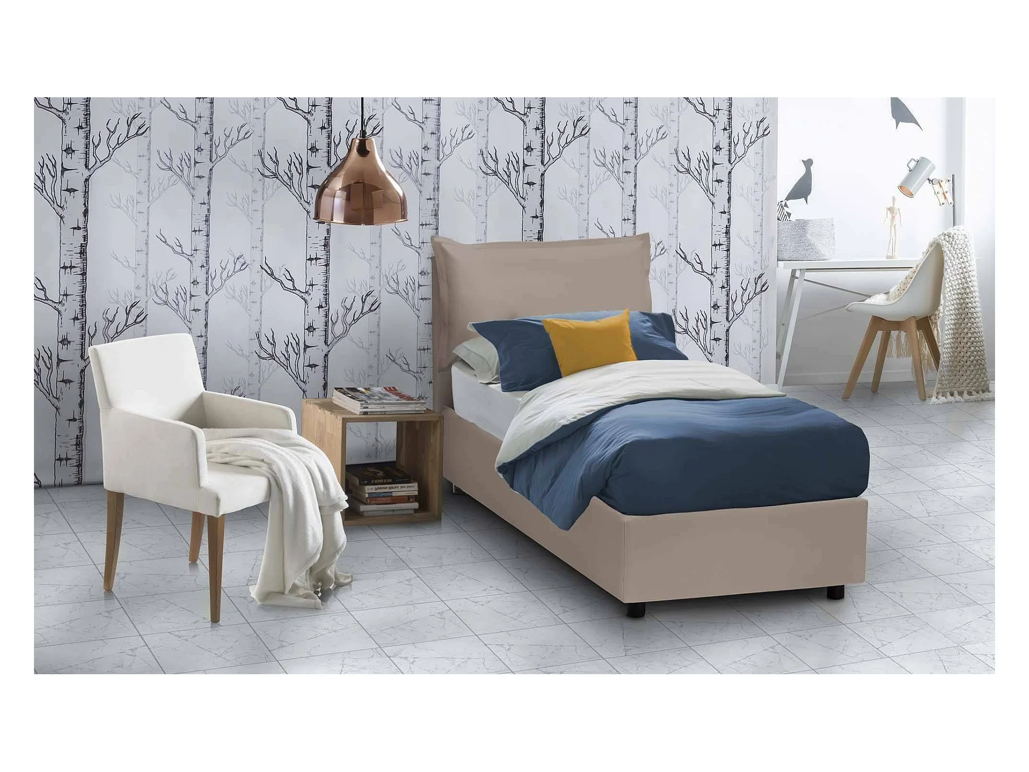 Lit simple Carmen, Lit coffre avec revêtement en éco-cuir, 100% Made in Italy, Ouverture frontale, avec matelas 90x190 cm inclus, Taupe