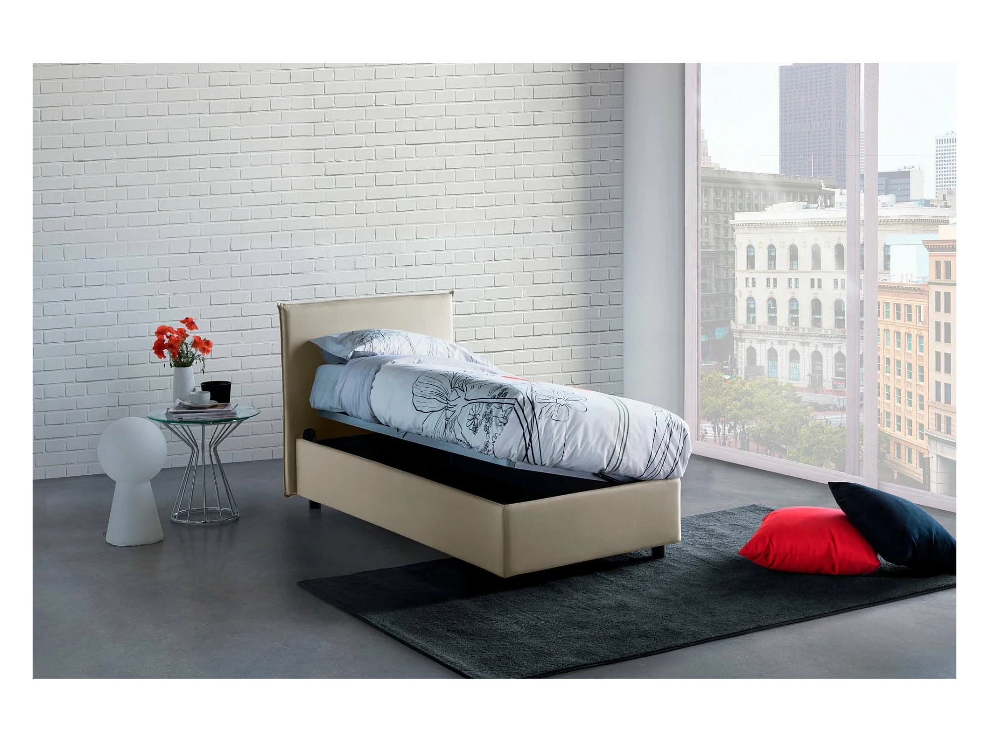 Lit simple Carola, Lit coffre avec revêtement en tissu, 100% Made in Italy, Ouverture latérale, avec matelas 80x190 cm inclus, Beige