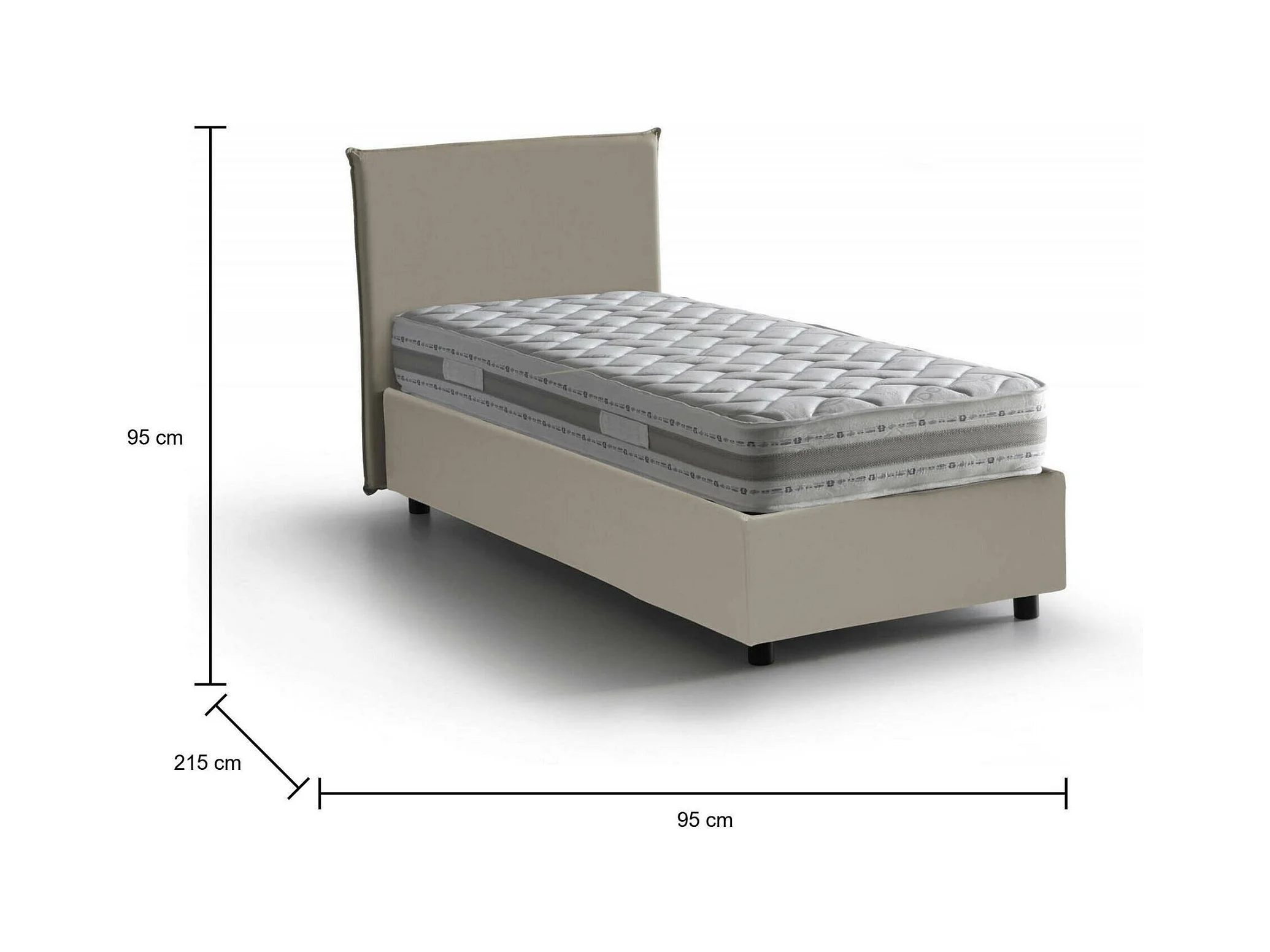 Lit simple Cassandra, Lit coffre avec revêtement en éco-cuir, 100% Made in Italy, Ouverture frontale, avec matelas 80x200 cm inclus, Taupe