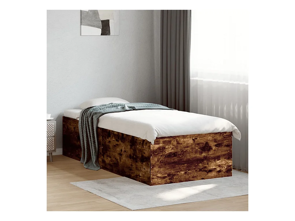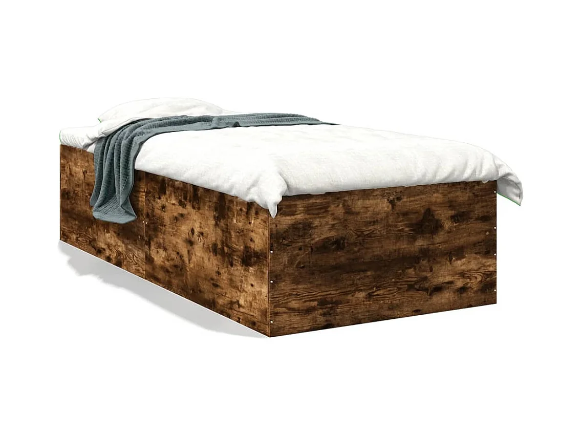 Lit simple chêne fumé 100x200 cm bois d'ingénierie FR24325
