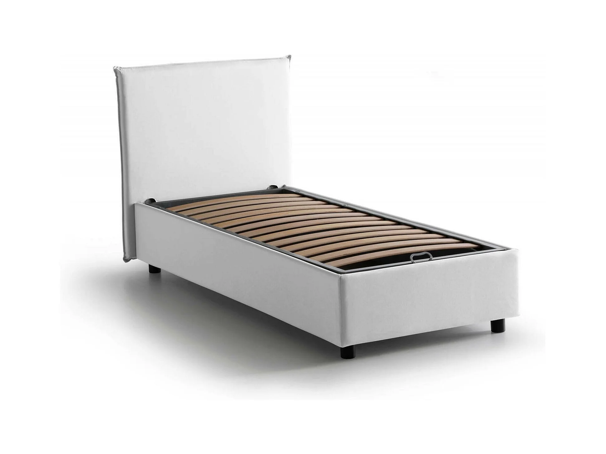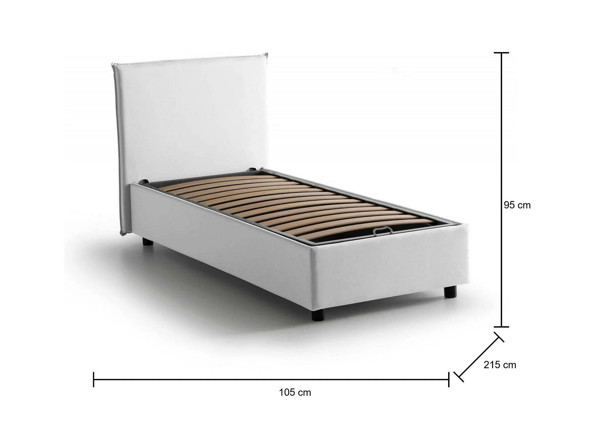 Lit simple Cira, Lit coffre avec revêtement en tissu, 100% Made in Italy, Ouverture frontale, adapté pour matelas 90x200 cm, Blanc