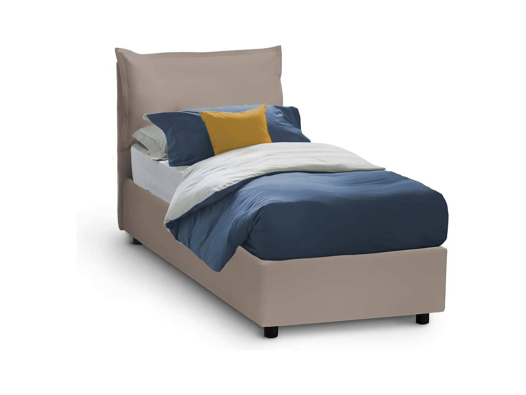 Lit simple Cristina, Lit coffre avec revêtement en éco-cuir, 100% Made in Italy, Ouverture frontale, adapté pour matelas 80x200 cm, Taupe