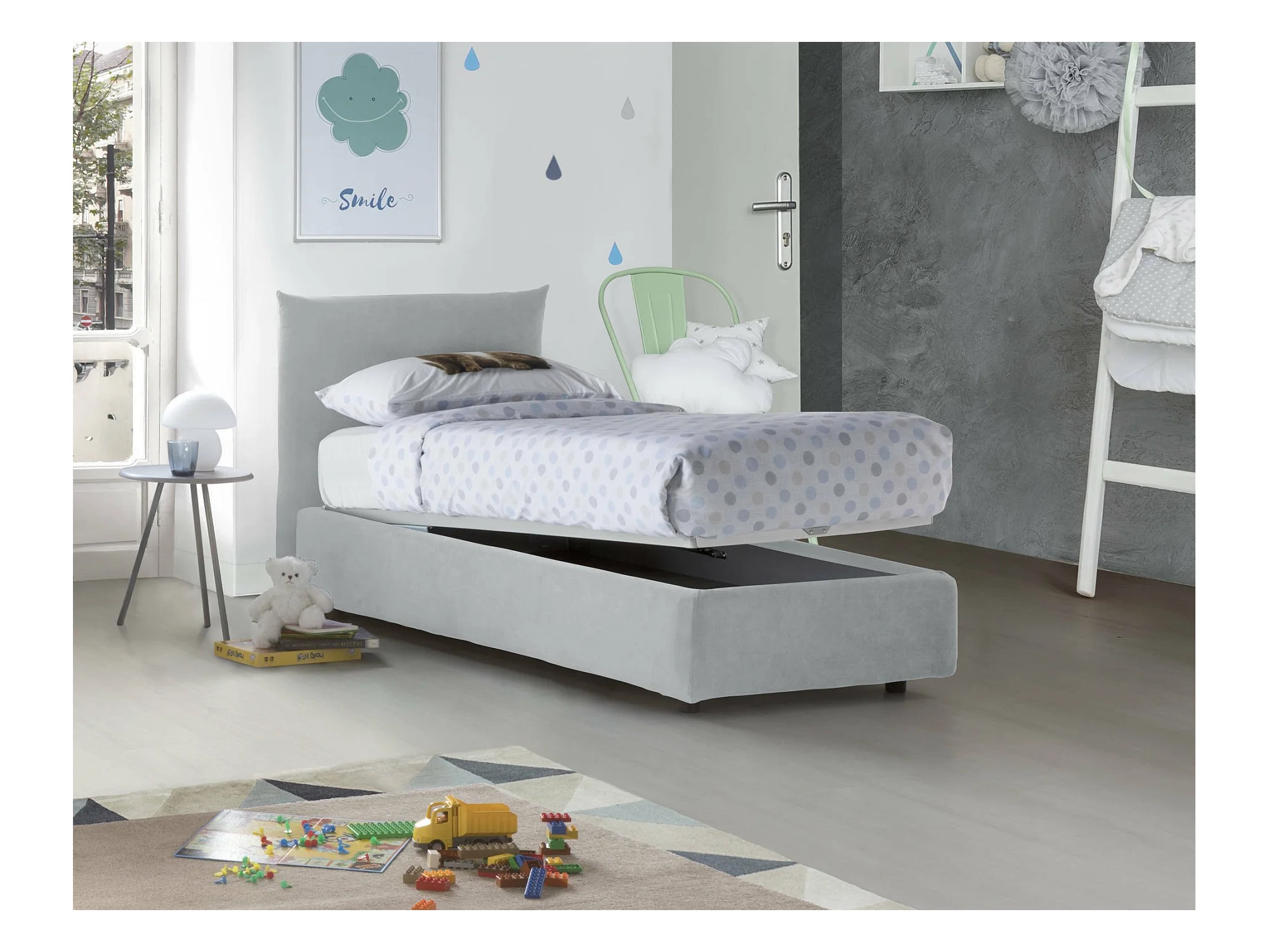 Lit simple Daisy, Lit coffre avec revêtement en tissu, 100% Made in Italy, Ouverture frontale, avec matelas 80x190 cm inclus, Blanc