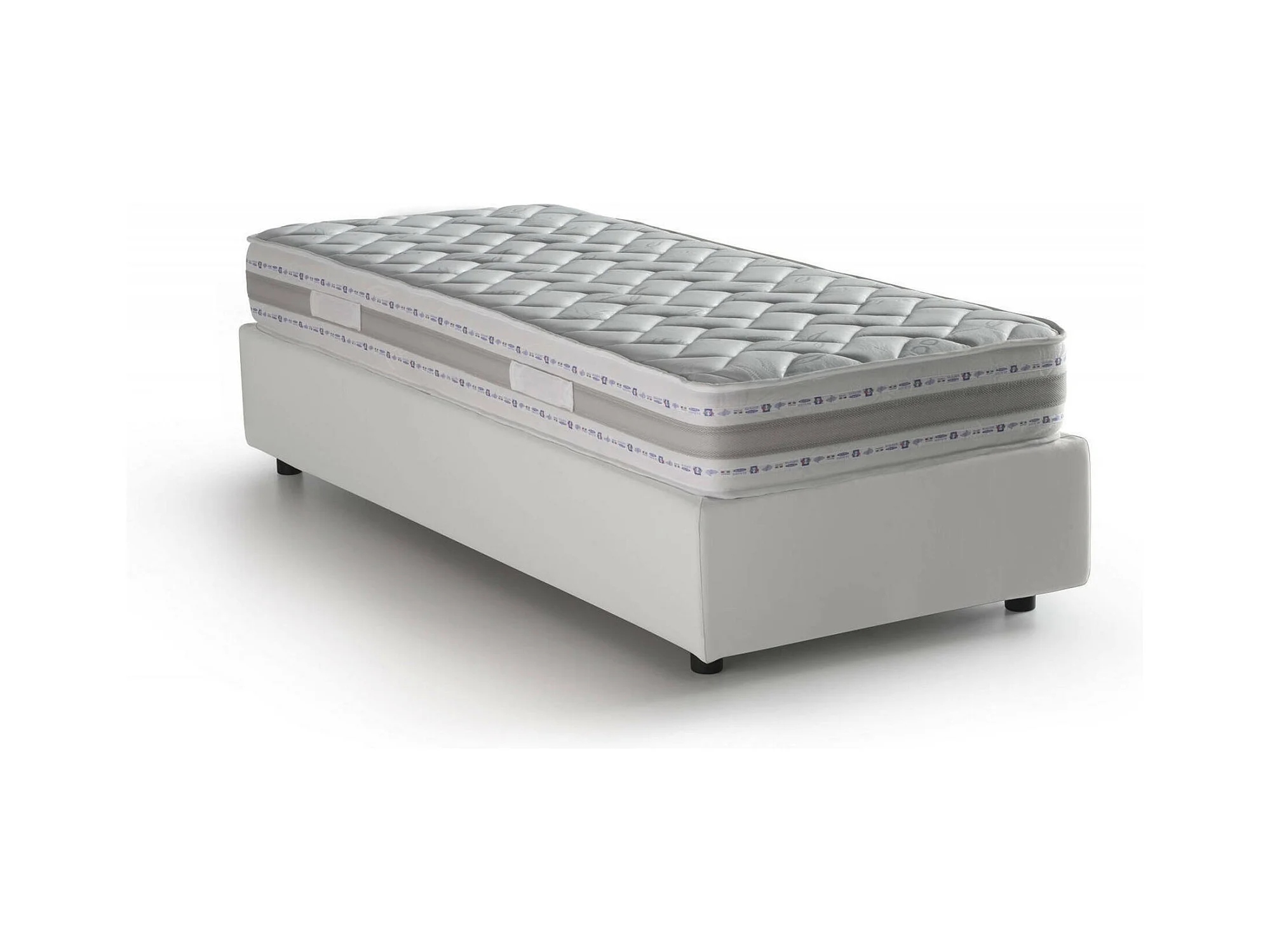 Lit simple Dalfan, Lit coffre avec revêtement en éco-cuir, 100% Made in Italy, Ouverture frontale, avec matelas 80x200 cm inclus, Blanc
