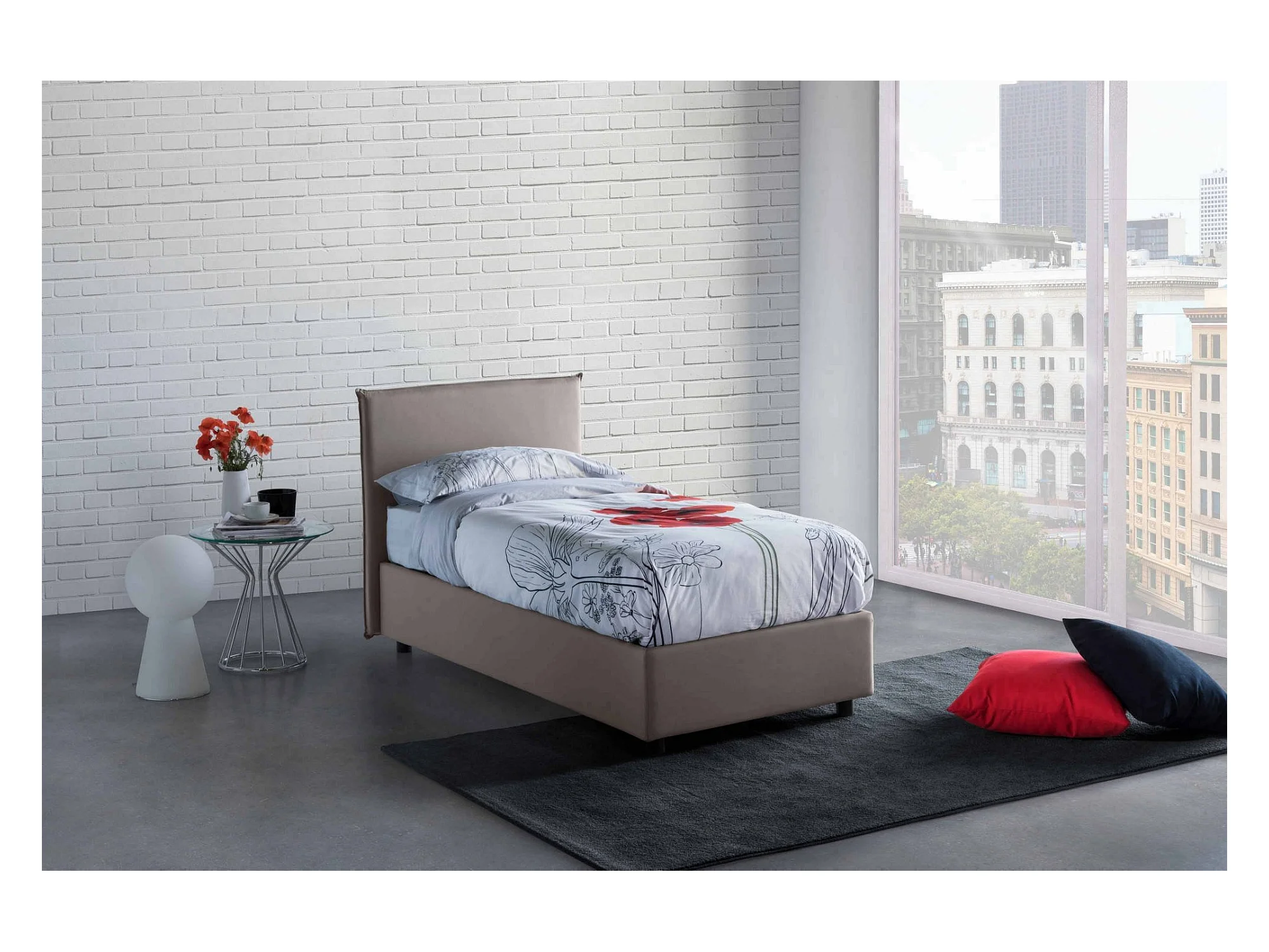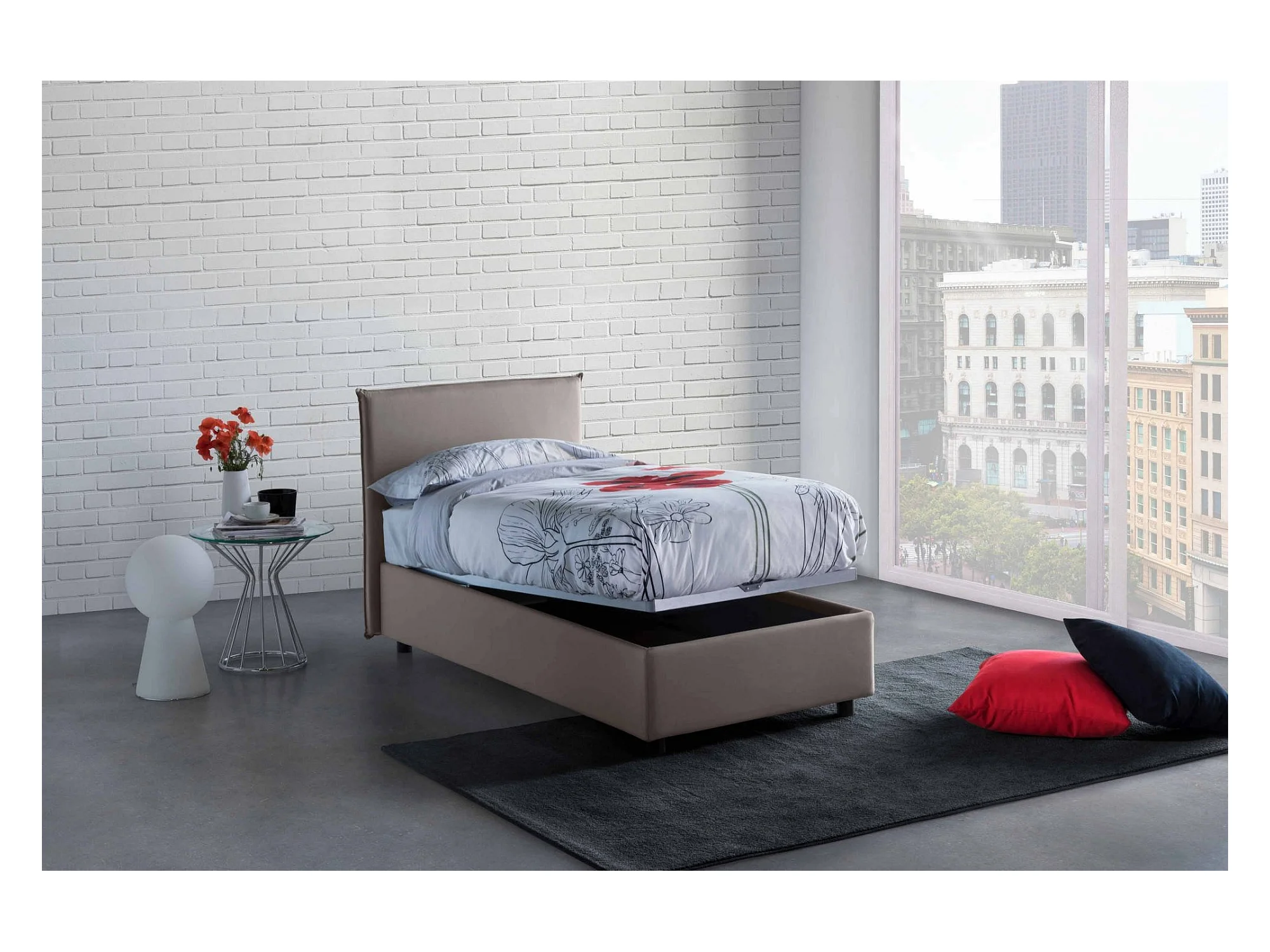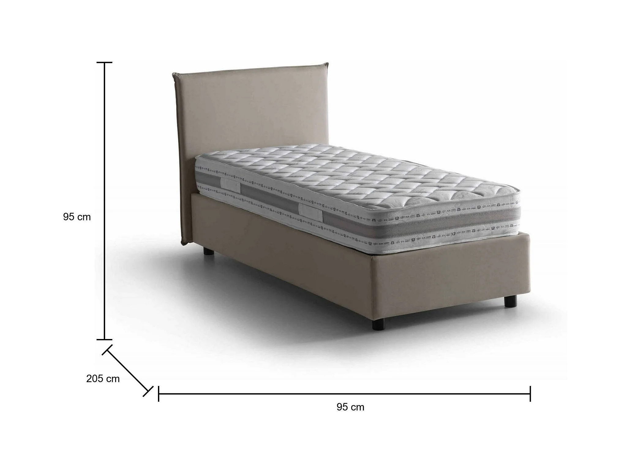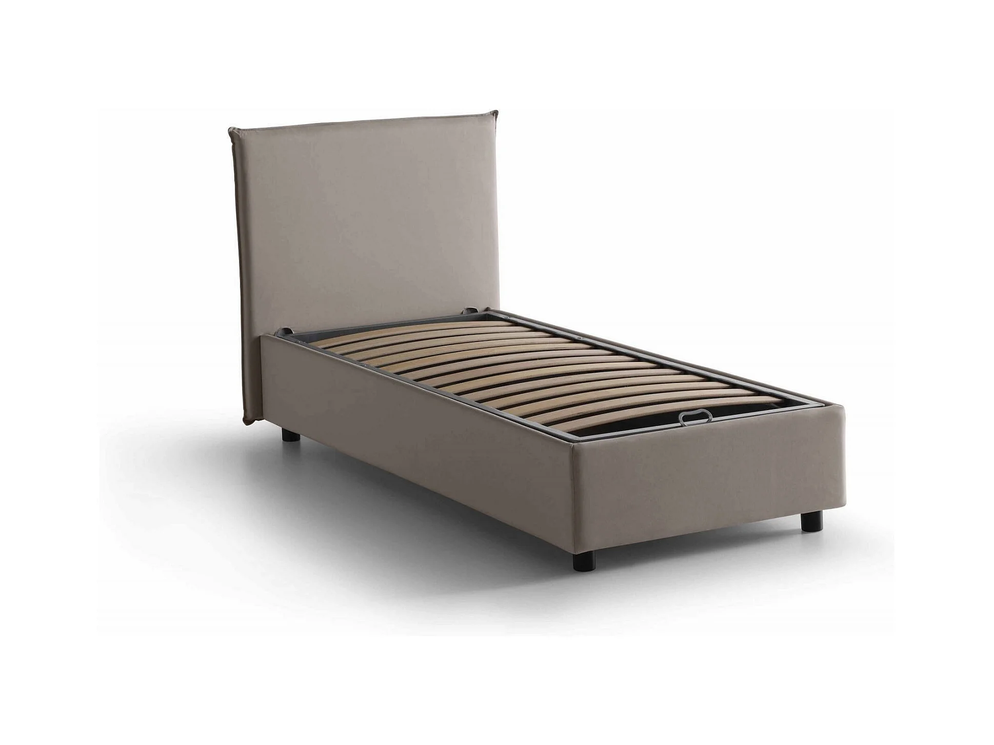 Lit simple Daquin, Lit coffre avec revêtement en tissu, 100% Made in Italy, Ouverture frontale, avec matelas 80x190 cm inclus, Taupe