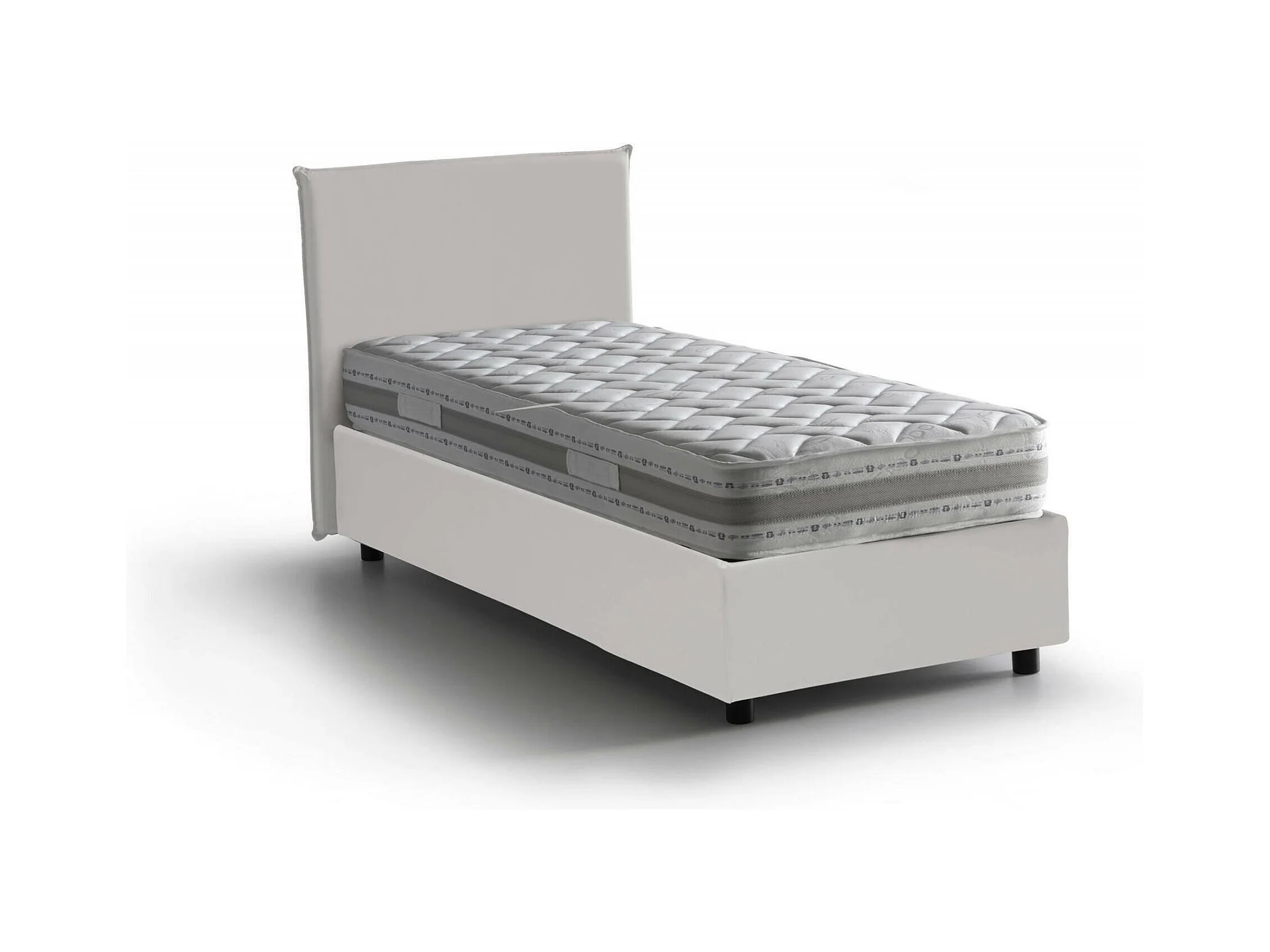 Lit simple Dargill, Lit coffre avec revêtement en éco-cuir, 100% Made in Italy, Ouverture latérale, avec matelas 80x190 cm inclus, Blanc