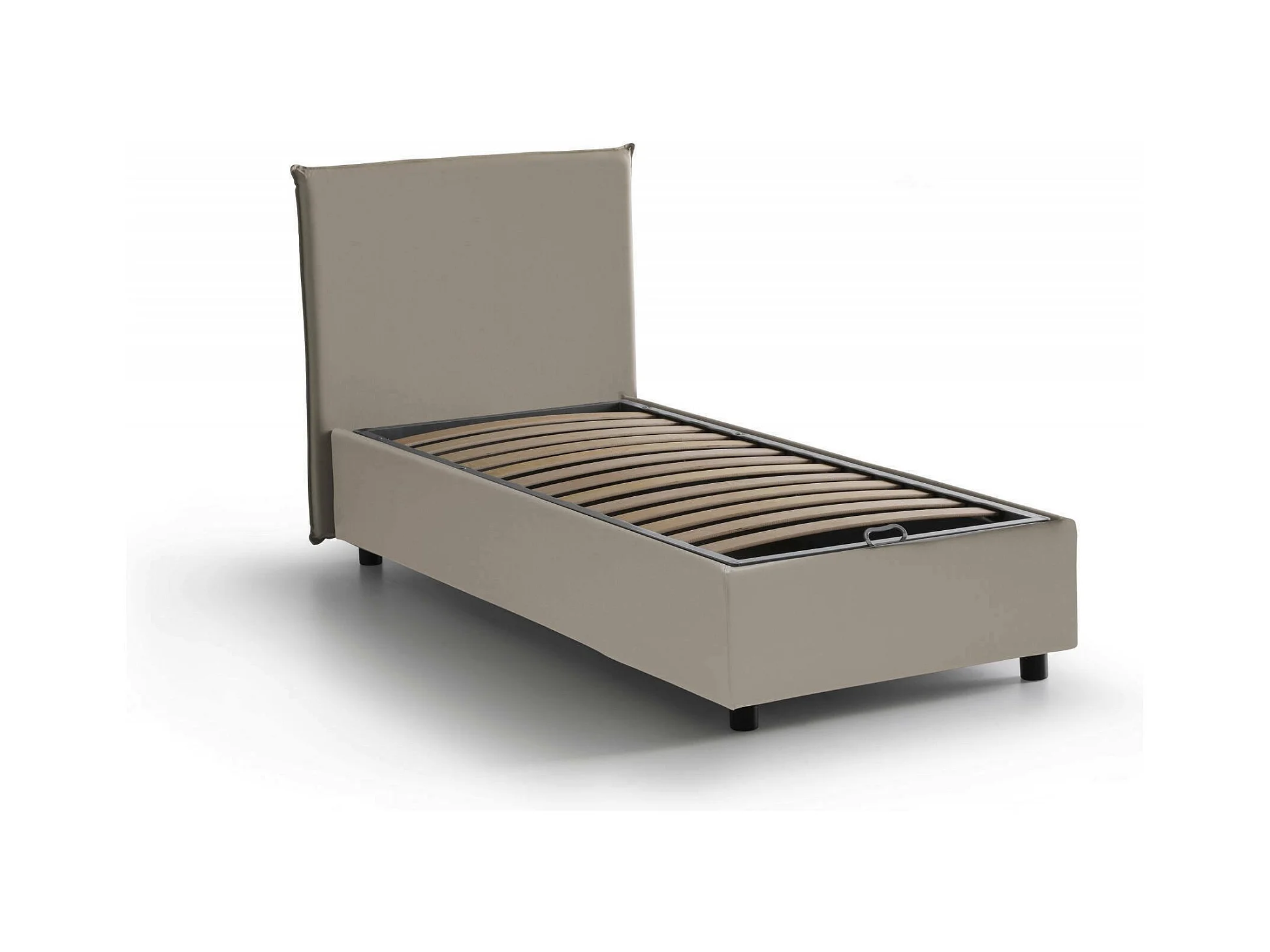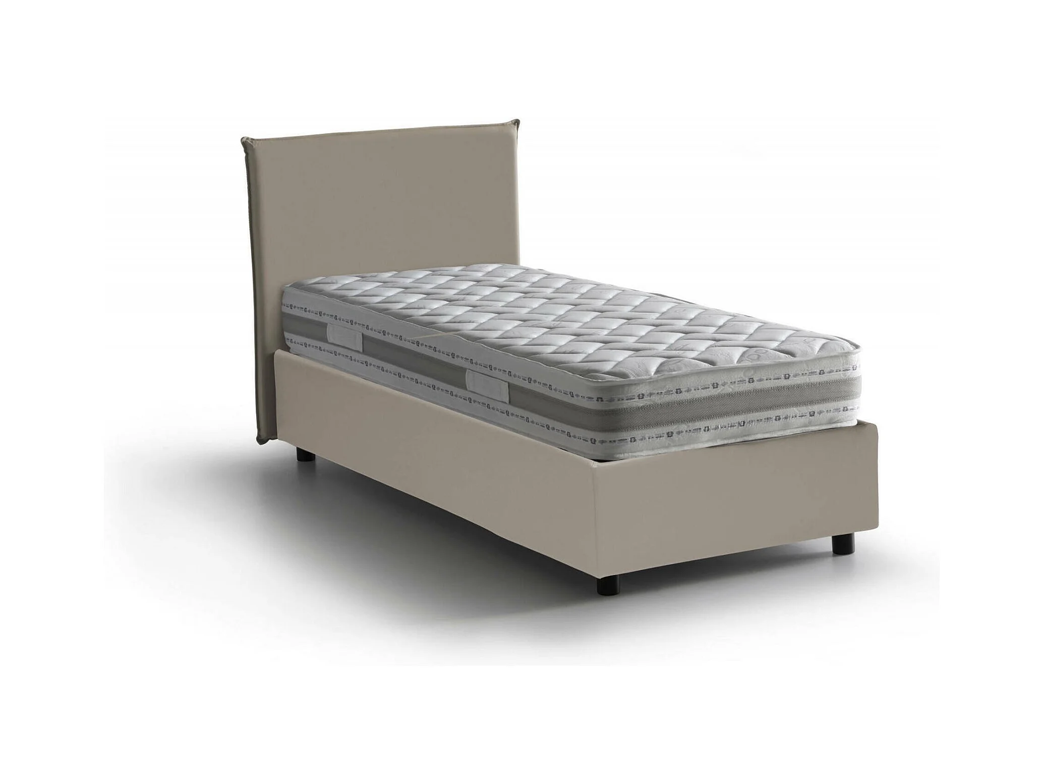 Lit simple Dbabb, Lit coffre avec revêtement en éco-cuir, 100% Made in Italy, Ouverture frontale, avec matelas 80x200 cm inclus, Taupe