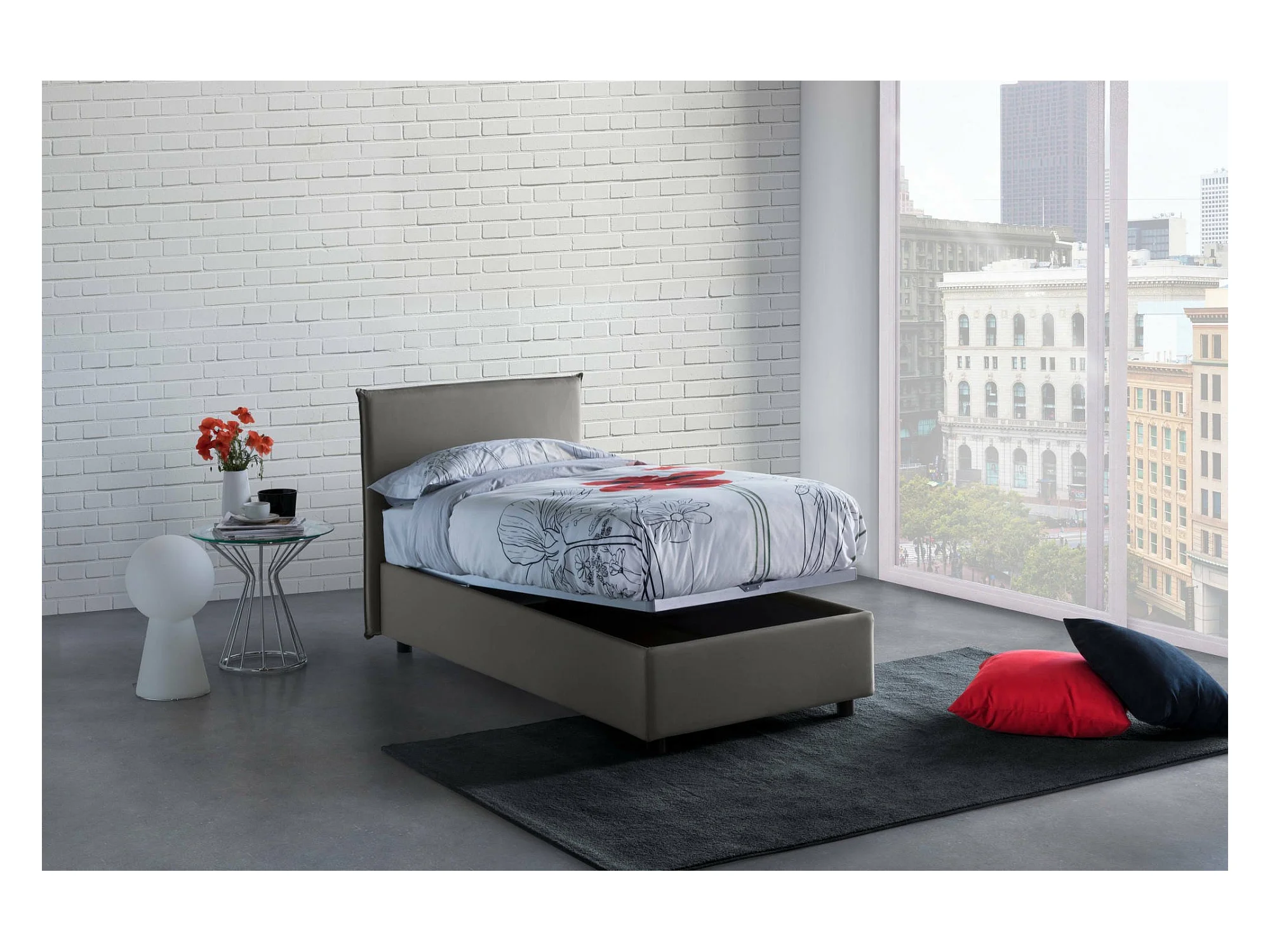 Lit simple Dbacchi, Lit coffre avec revêtement en tissu, 100% Made in Italy, Ouverture frontale, adapté pour matelas 80x200 cm, Gris