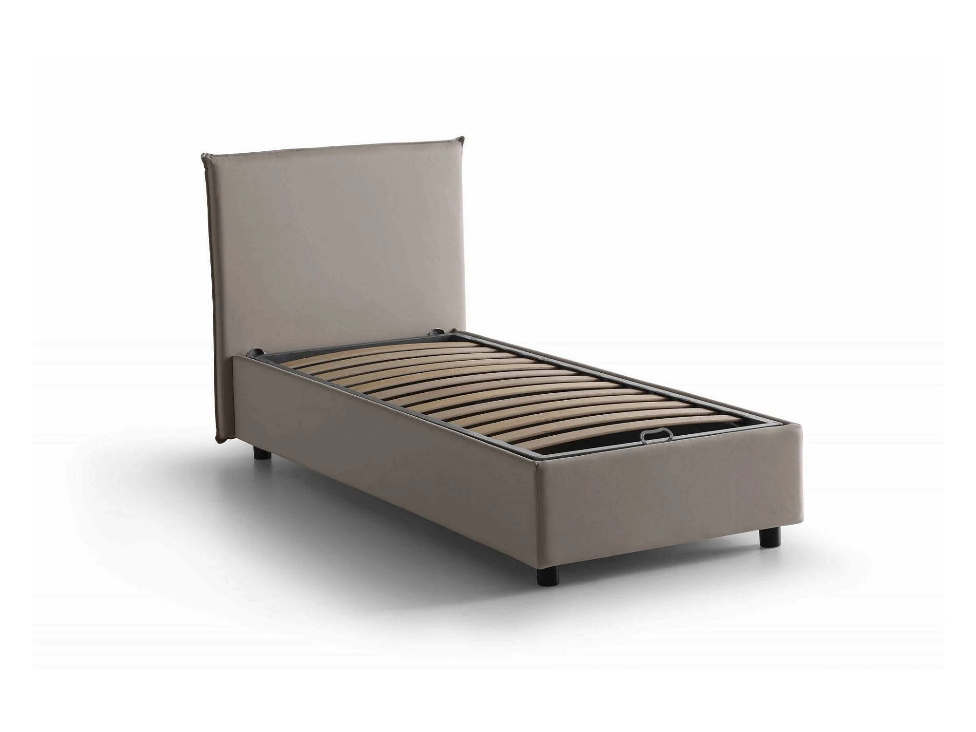 Lit simple Dbach, Lit coffre avec revêtement en tissu, 100% Made in Italy, Ouverture frontale, avec matelas 80x200 cm inclus, Taupe