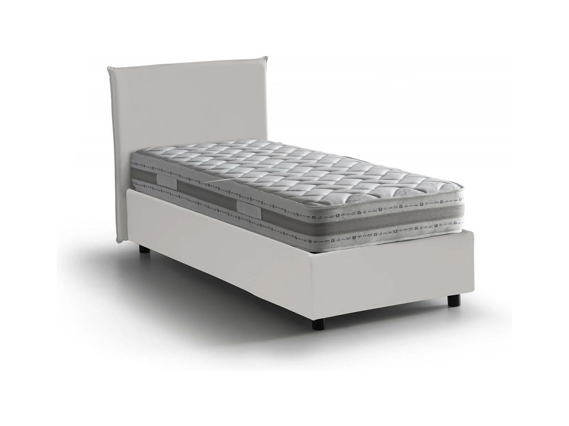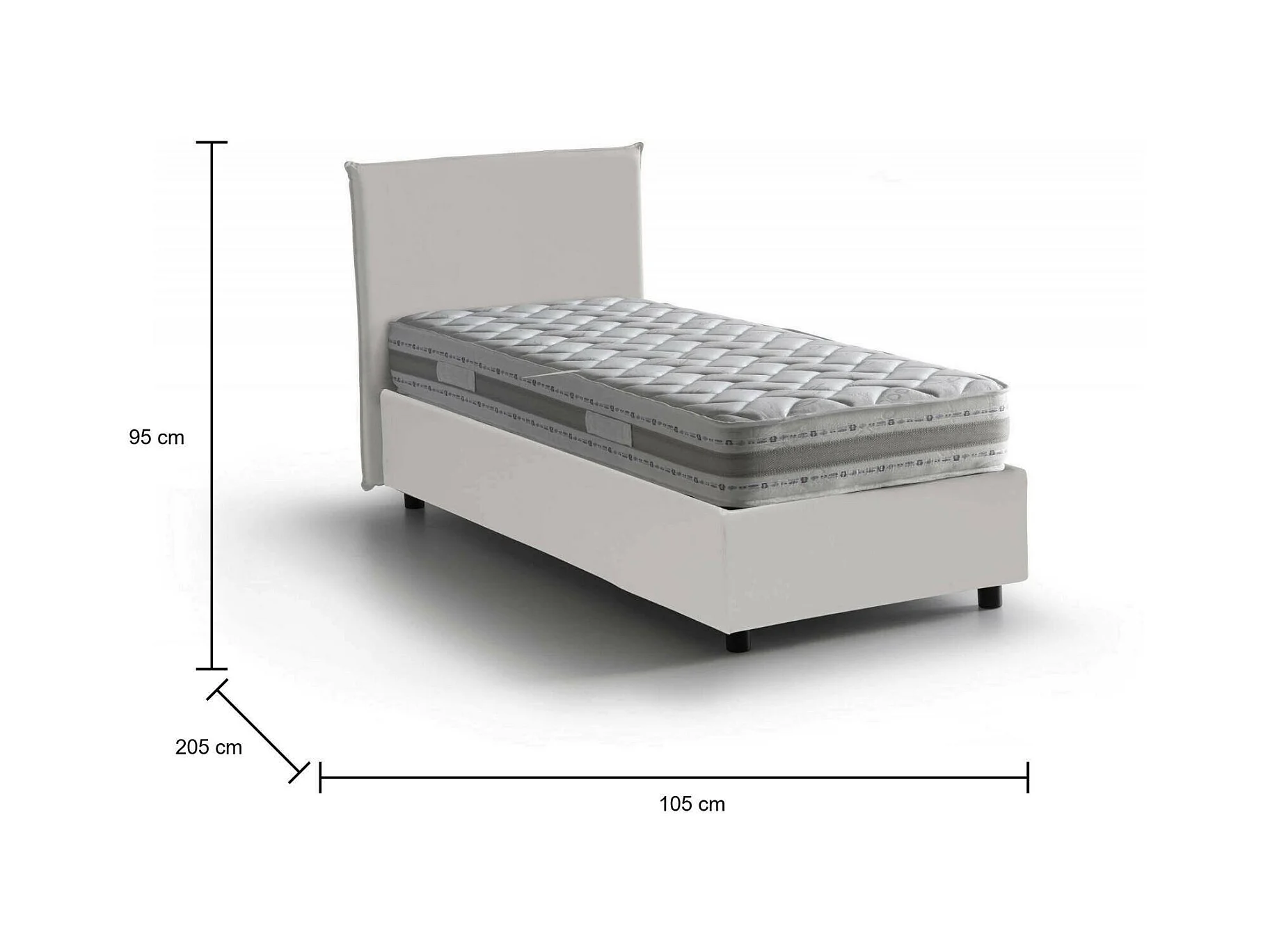 Lit simple Dbaiocc, Lit coffre avec revêtement en éco-cuir, 100% Made in Italy, Ouverture frontale, avec matelas 90x190 cm inclus, Blanc