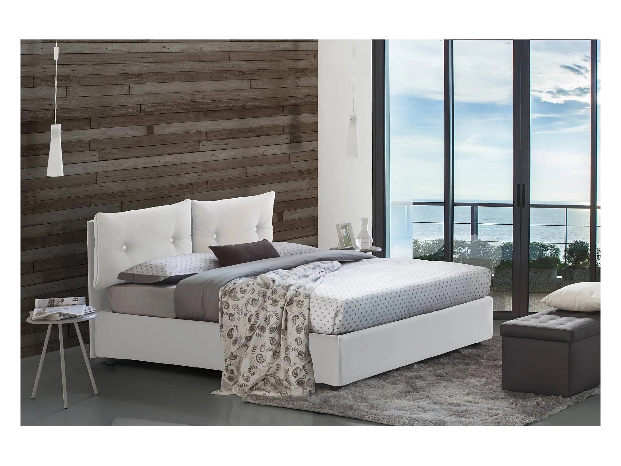 Lit simple Dbalb, Lit coffre avec revêtement en éco-cuir, 100% Made in Italy, Ouverture frontale, avec matelas 80x190 cm inclus, Blanc