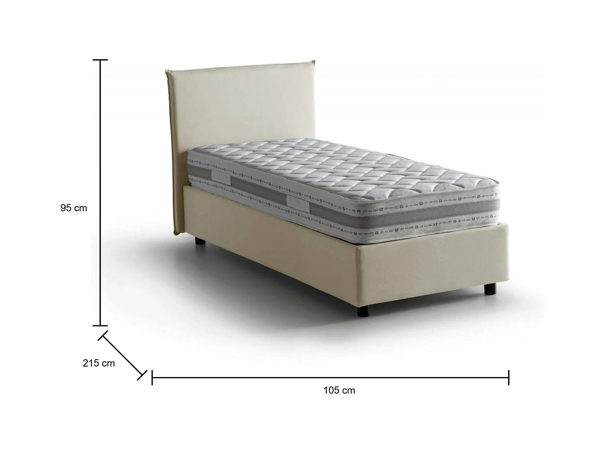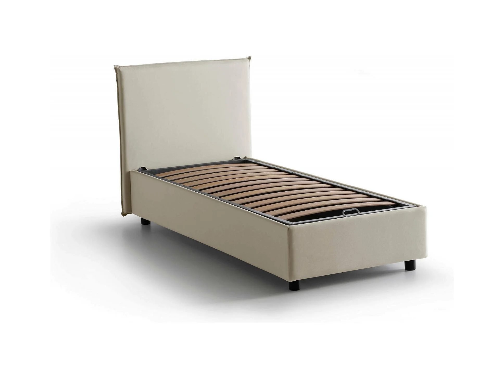 Lit simple Dbaston, Lit coffre avec revêtement en tissu, 100% Made in Italy, Ouverture frontale, avec matelas 90x200 cm inclus, Beige
