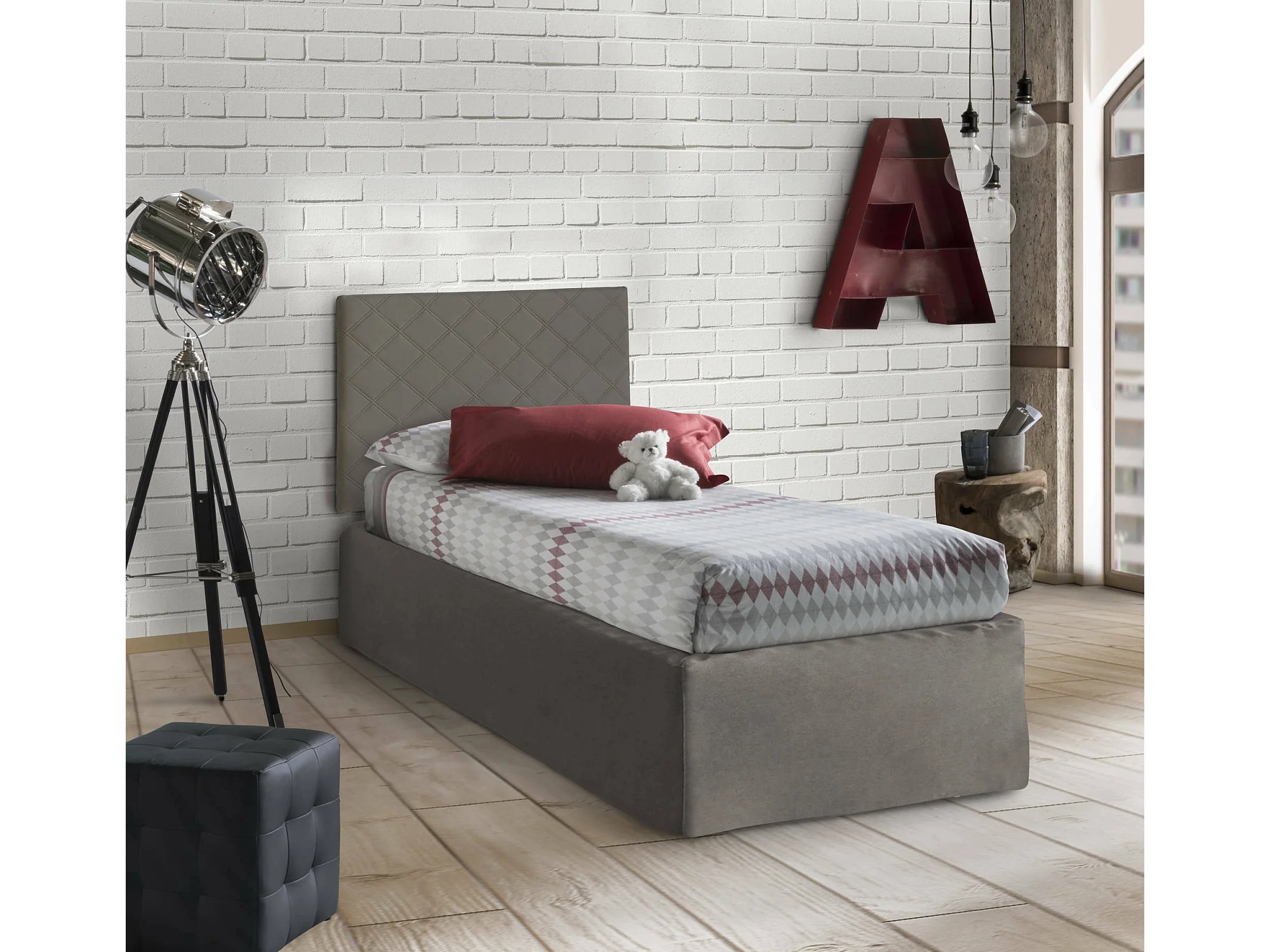 Lit simple Dbertin, Tête de lit en similicuir avec base orthopédique et cantonnière, 100% Made in Italy, adapté pour lit simple, pour matelas 80x190 cm, Tourterelle