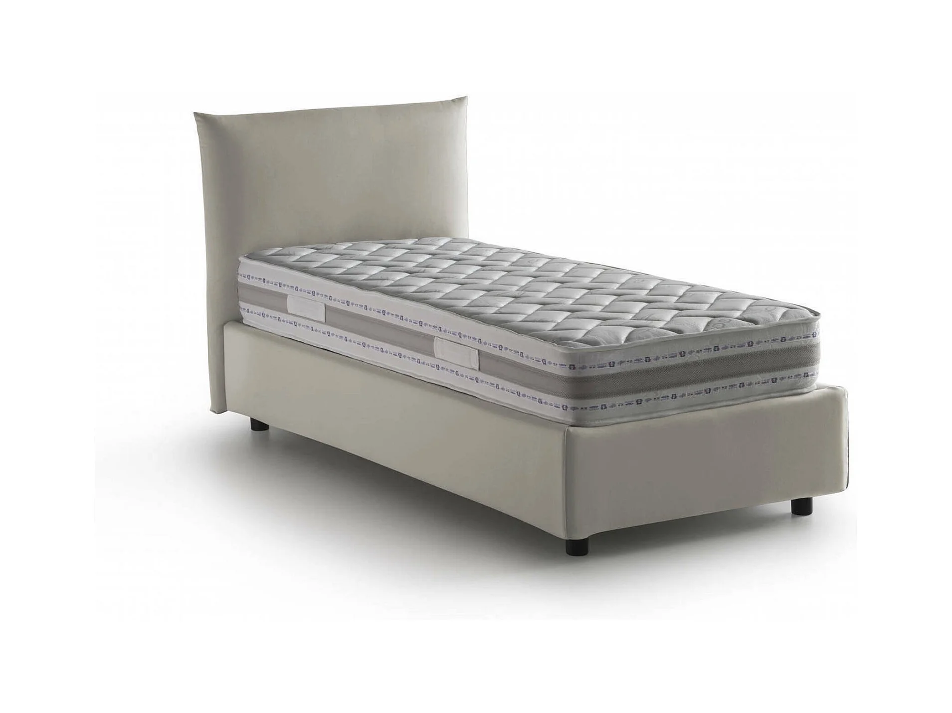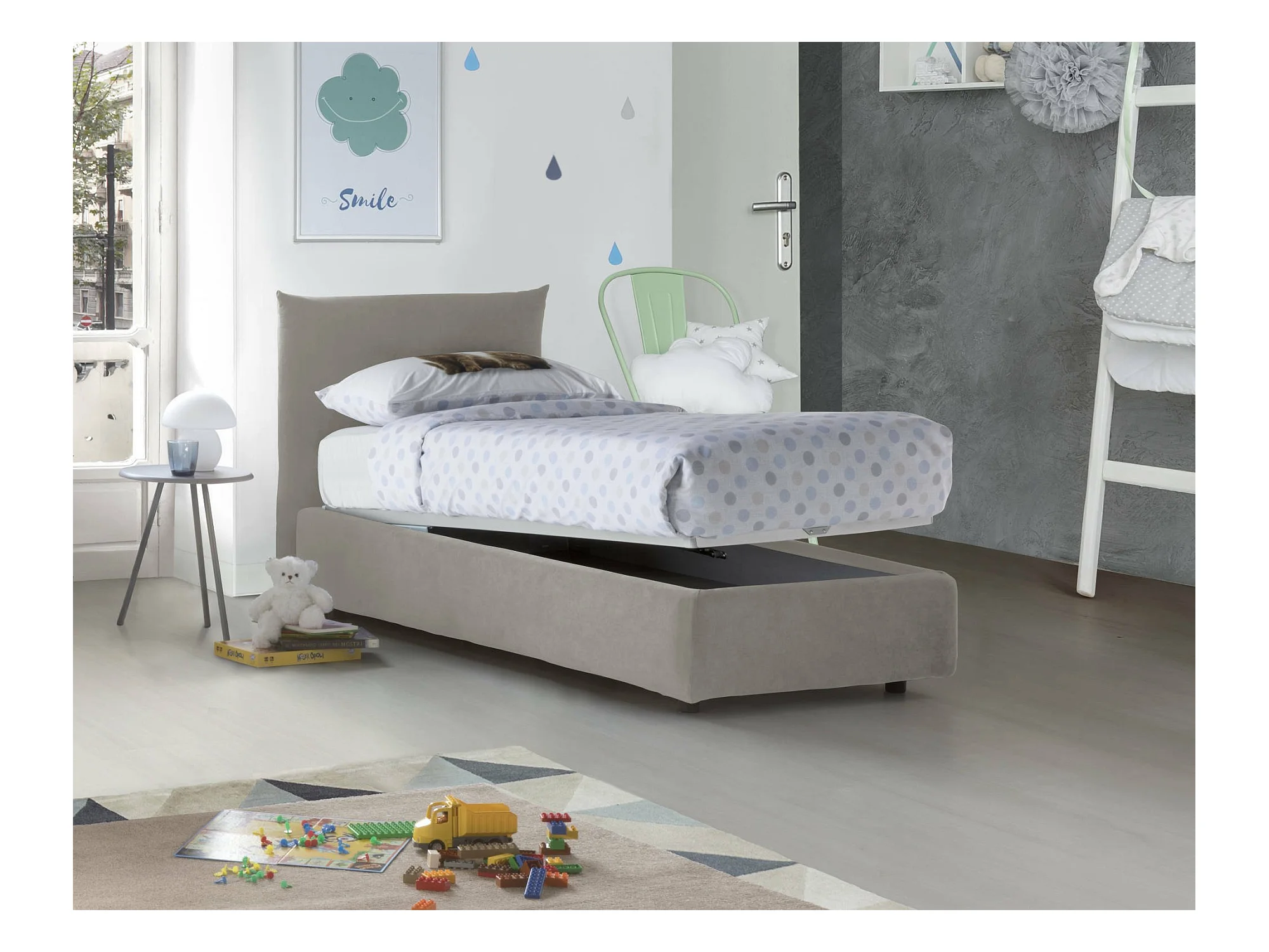 Lit simple Dbut, Lit coffre avec revêtement en tissu, 100% Made in Italy, Ouverture frontale, avec matelas 80x190 cm inclus, Beige