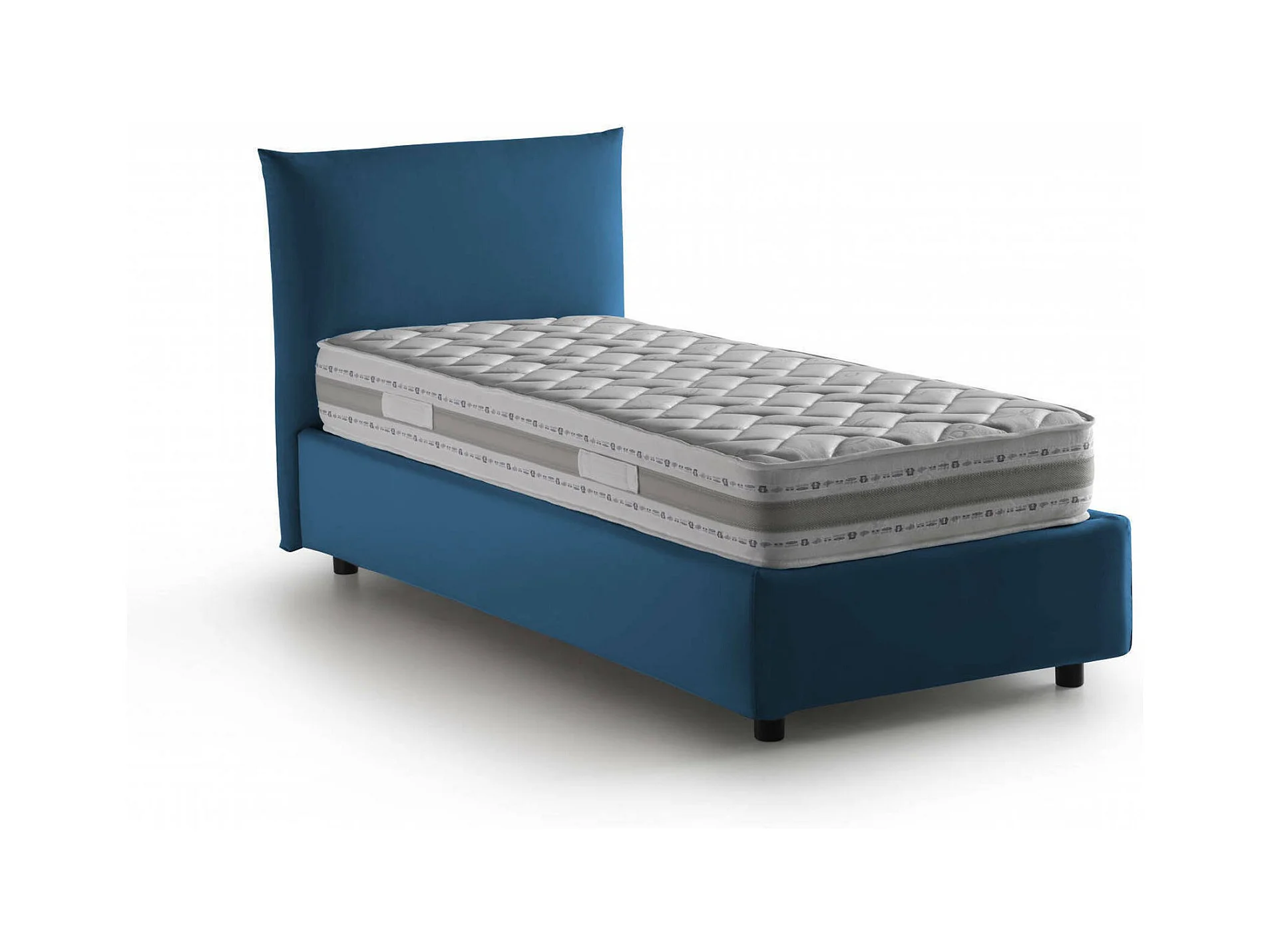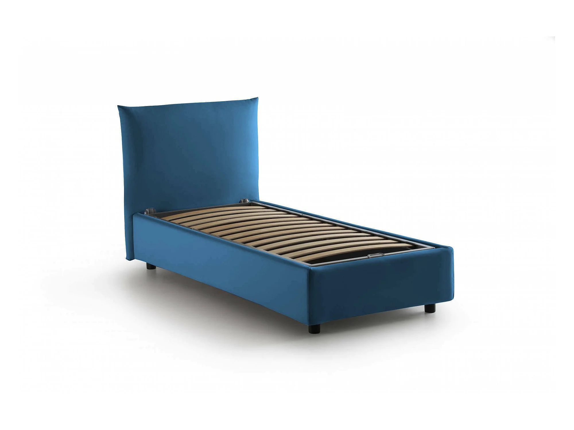 Lit simple Dbut, Lit coffre avec revêtement en tissu, 100% Made in Italy, Ouverture frontale, avec matelas 80x190 cm inclus, Bleu