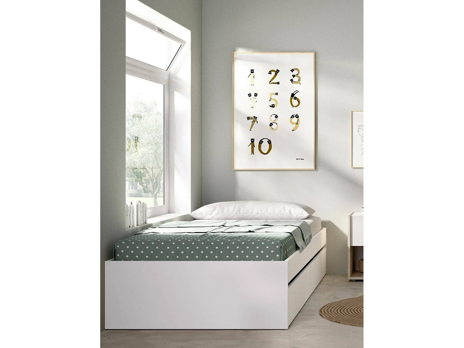 Lit simple Ddetr, Sommier pour chambre, Literie par chambre, Support de matelas, 96x195 h40 cm, Blanc