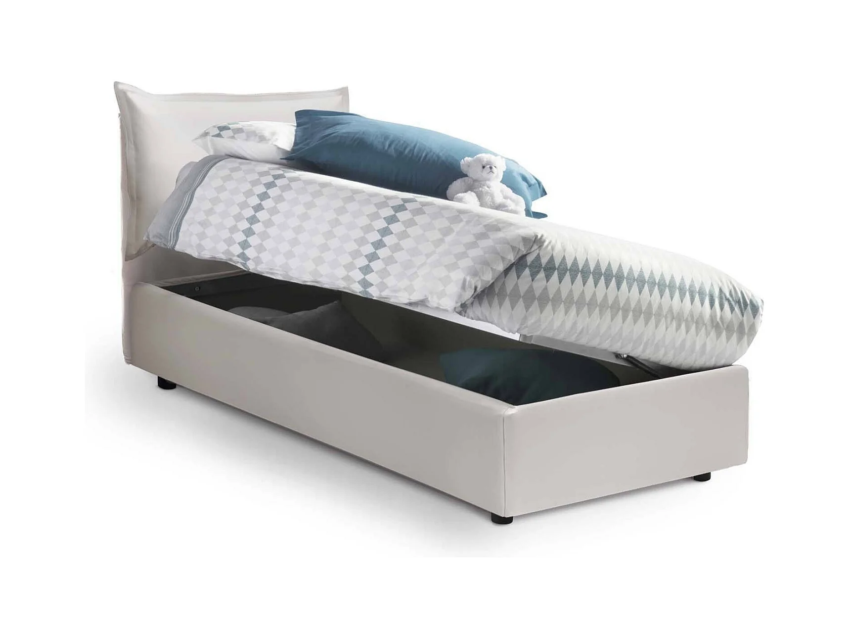 Lit simple Dgelm, Lit coffre avec revêtement en éco-cuir, 100% Made in Italy, Ouverture latérale, adapté pour matelas 80x190 cm, Blanc
