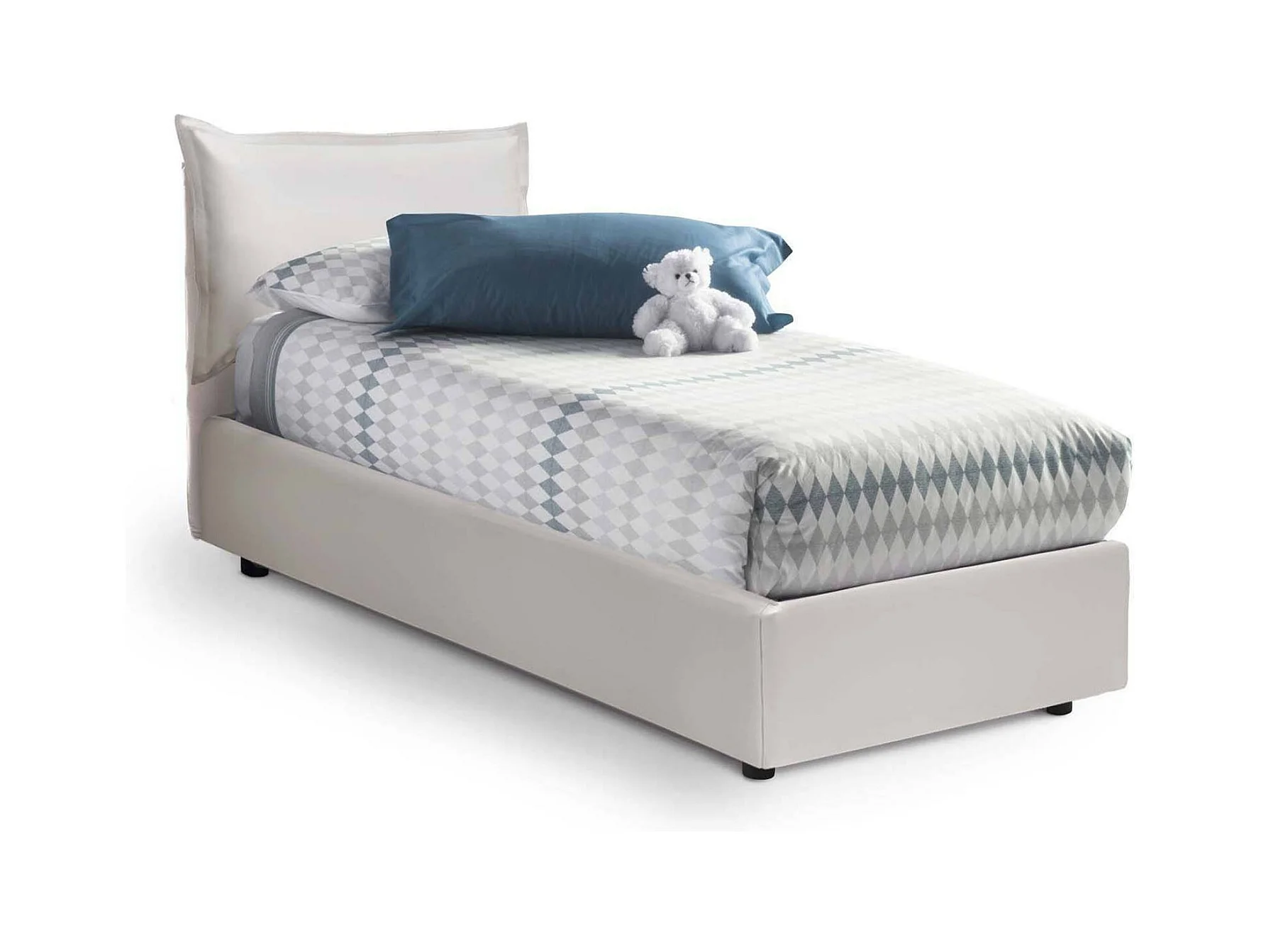Lit simple Dgrillo, Lit coffre avec revêtement en éco-cuir, 100% Made in Italy, Ouverture latérale, avec matelas 80x190 cm inclus, Blanc