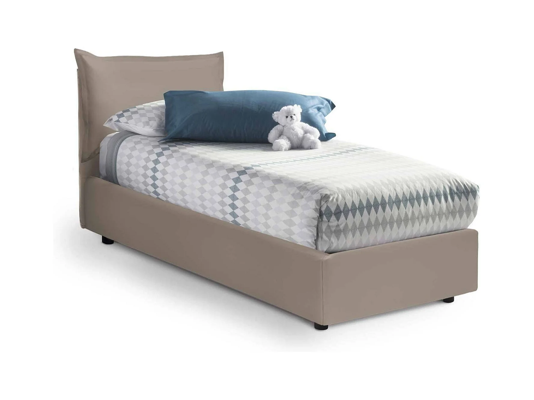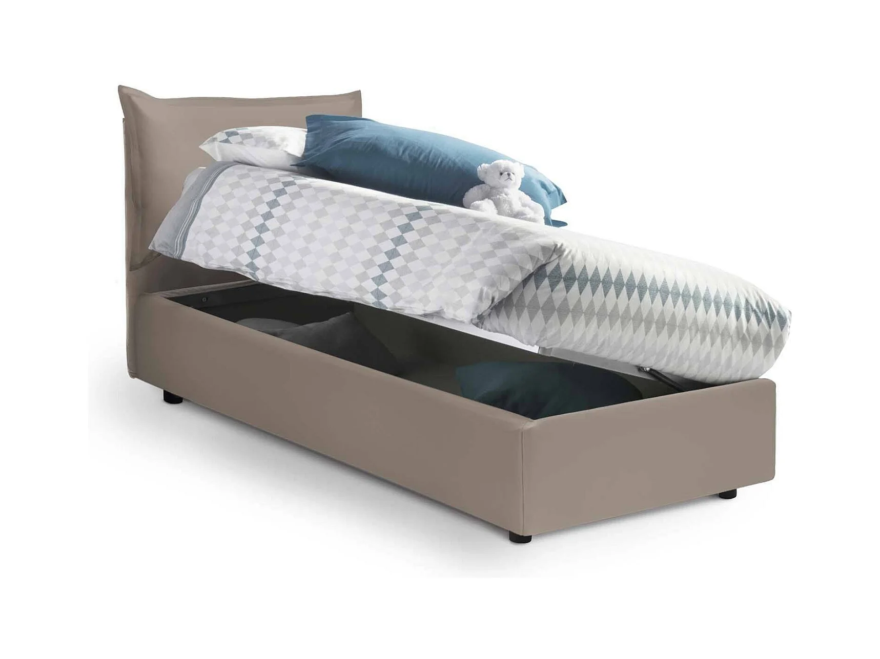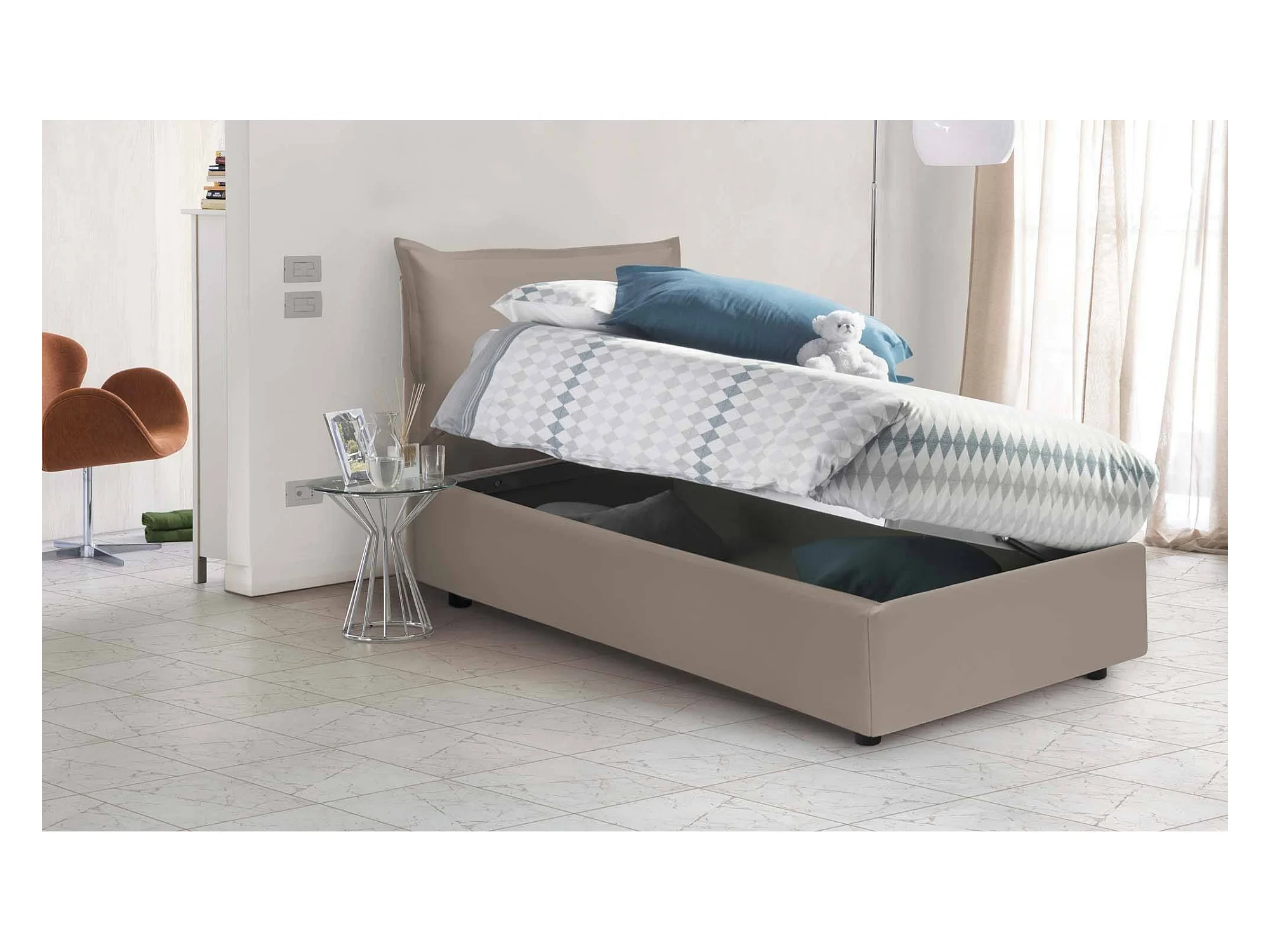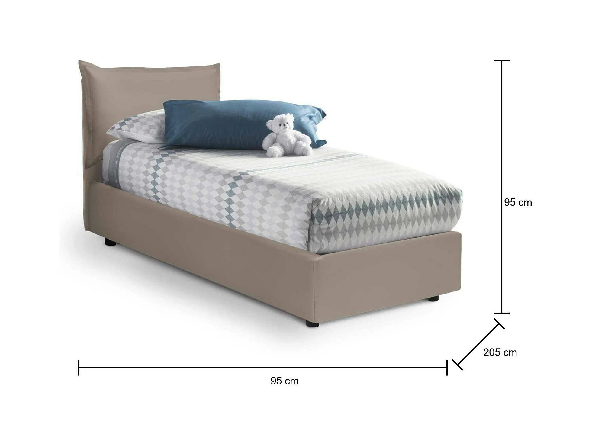 Lit simple Dgrillo, Lit coffre avec revêtement en éco-cuir, 100% Made in Italy, Ouverture latérale, avec matelas 80x190 cm inclus, Taupe