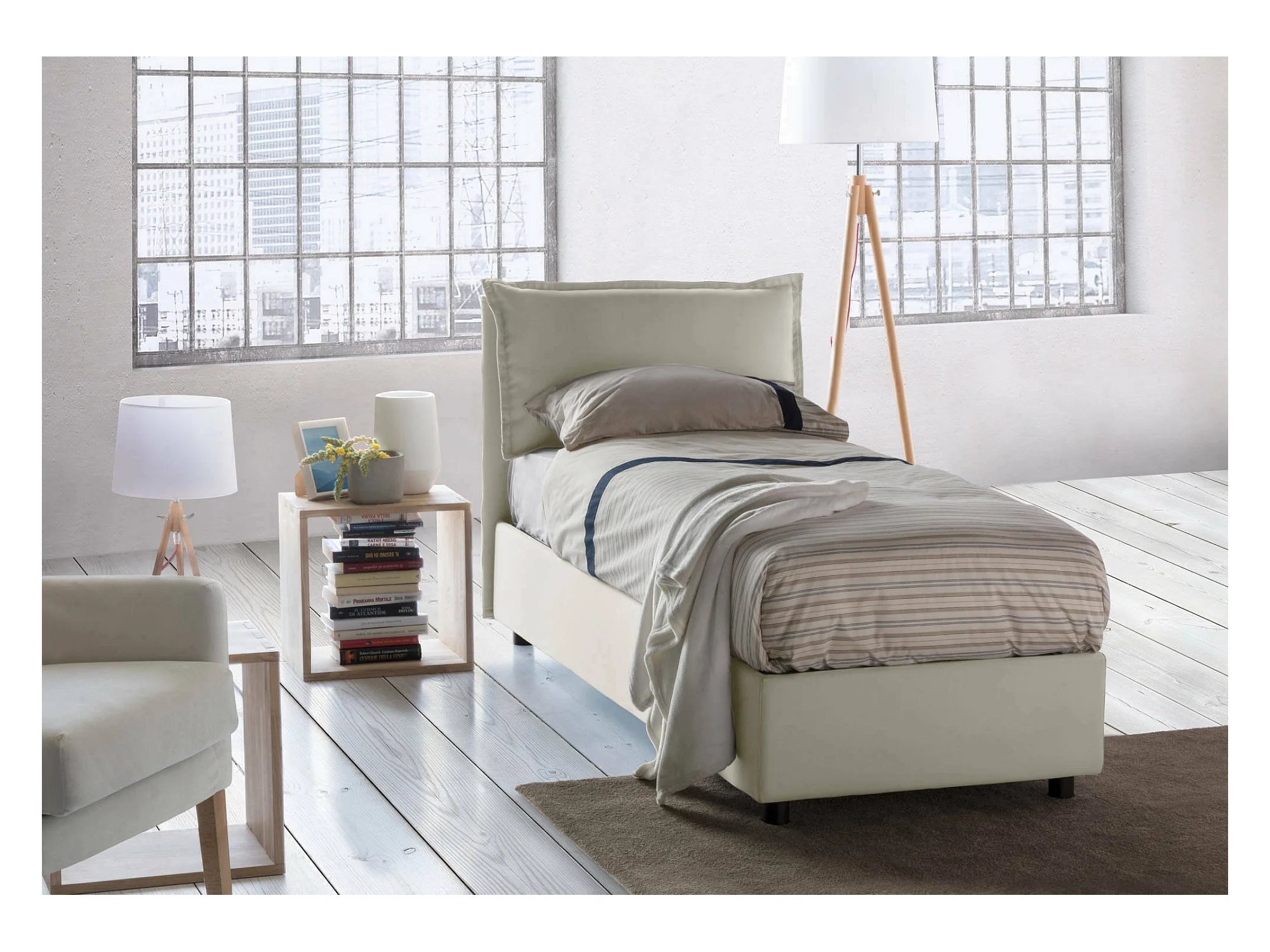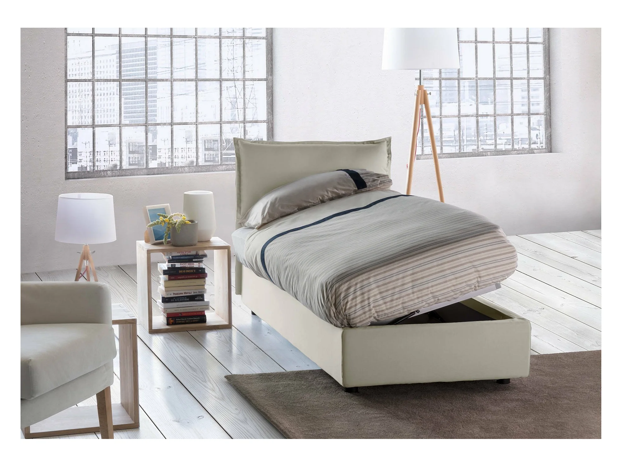 Lit simple Dmangone, Lit coffre avec revêtement en tissu, 100% Made in Italy, Ouverture latérale, avec matelas 80x190 cm inclus, Beige