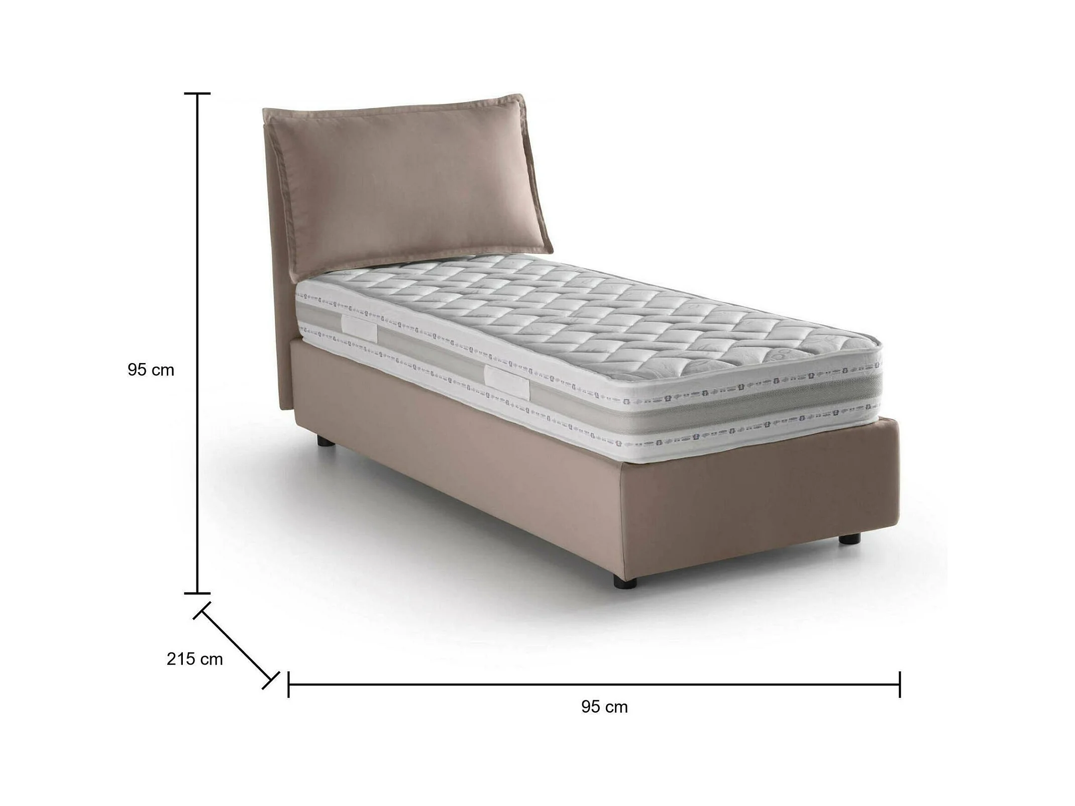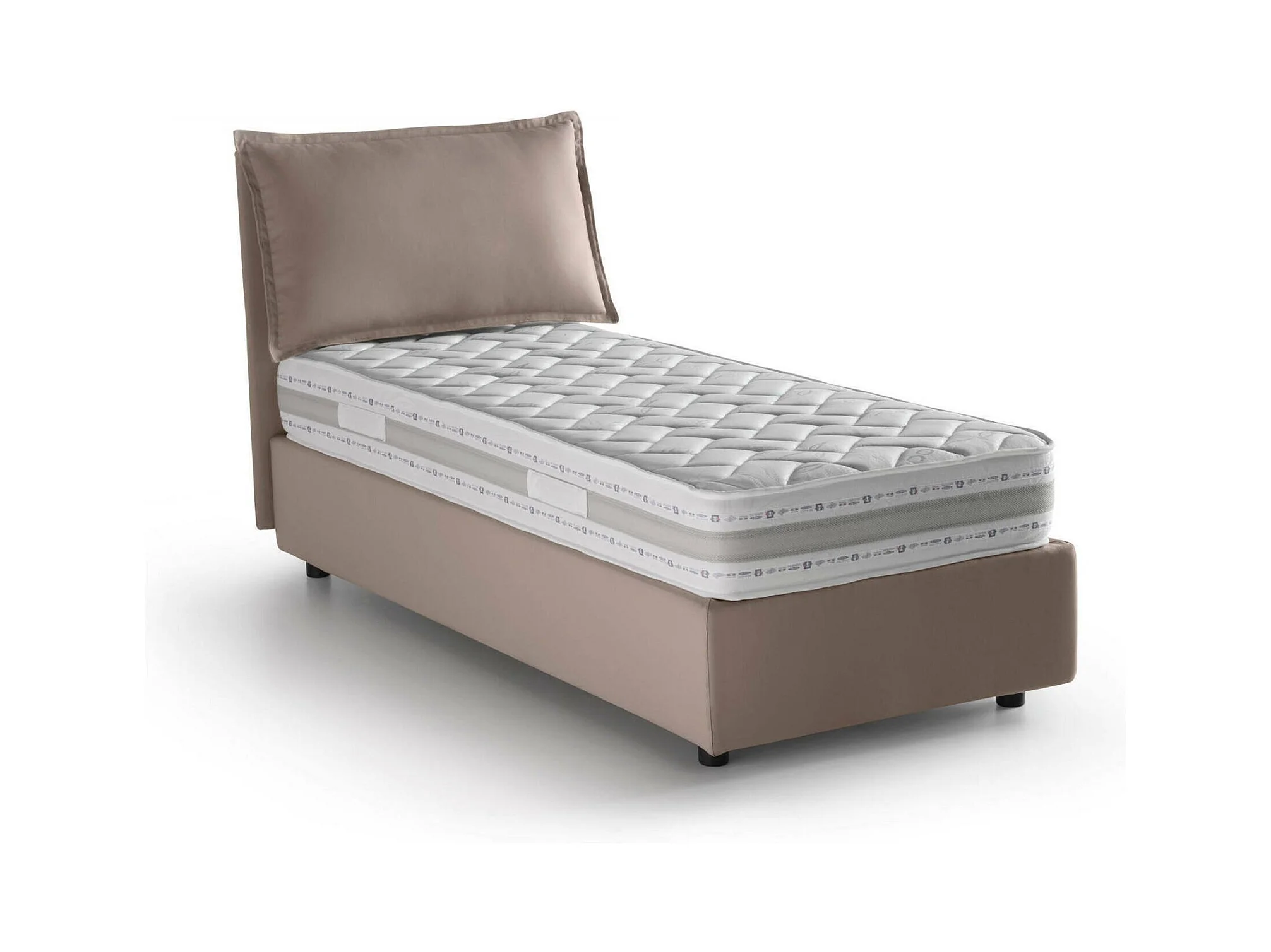 Lit simple Dmarcon, Lit coffre avec revêtement en tissu, 100% Made in Italy, Ouverture frontale, avec matelas 80x200 cm inclus, Taupe