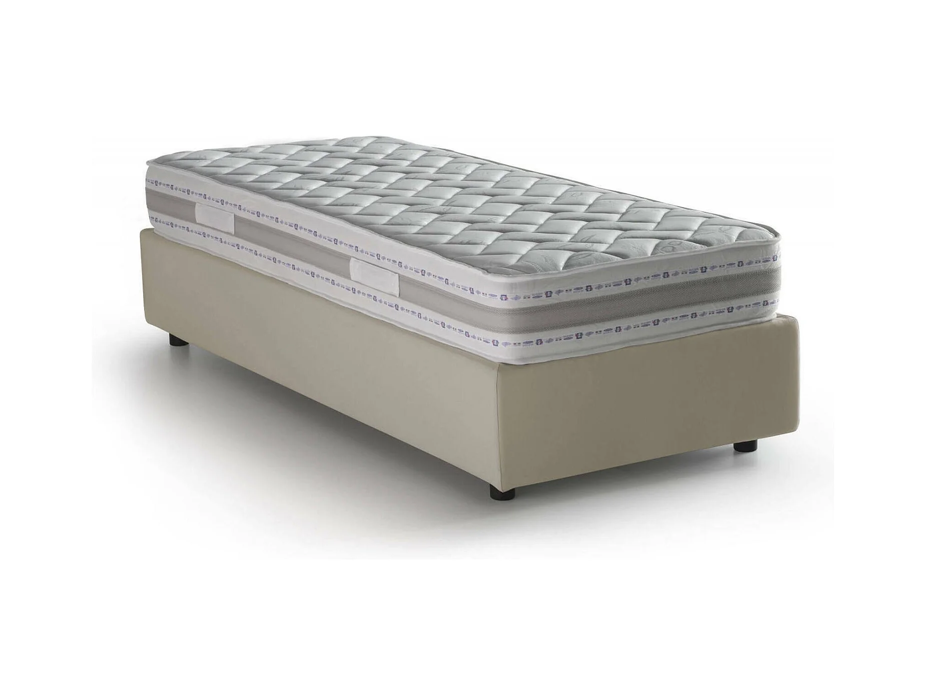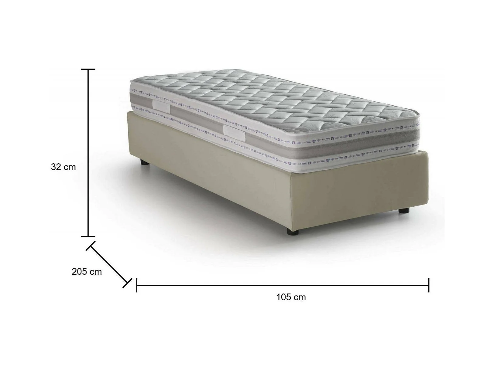 Lit simple Dmeol, Lit coffre avec revêtement en tissu, 100% Made in Italy, Ouverture frontale, avec matelas 90x190 cm inclus, Beige