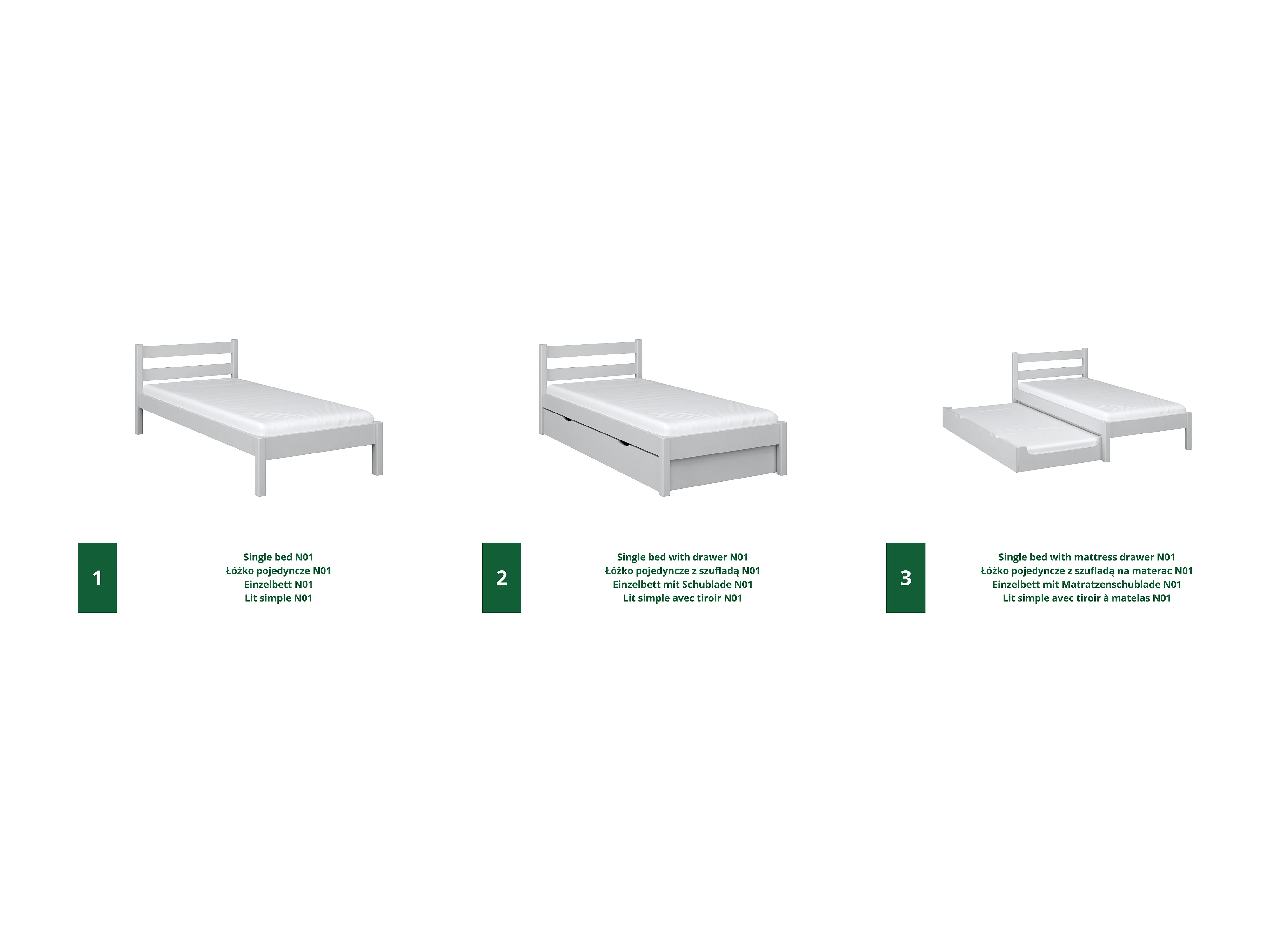 Lit simple en bois - avec tiroir N01 Gris 120x190