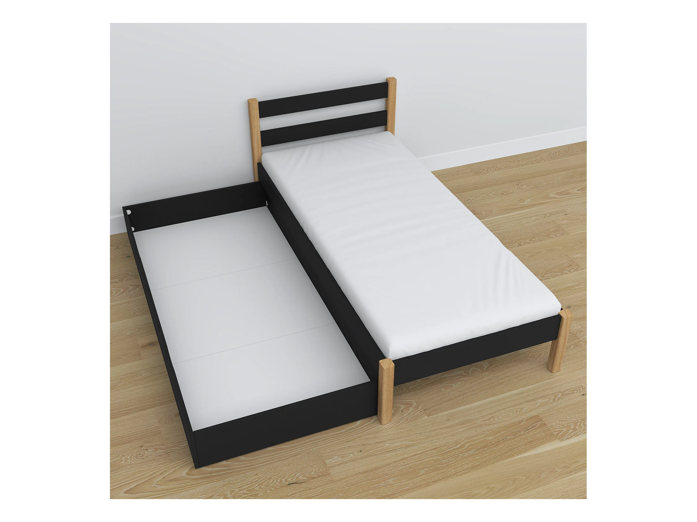 Lit simple en bois - avec tiroir N01 Noir / Chêne Naturel 80x200