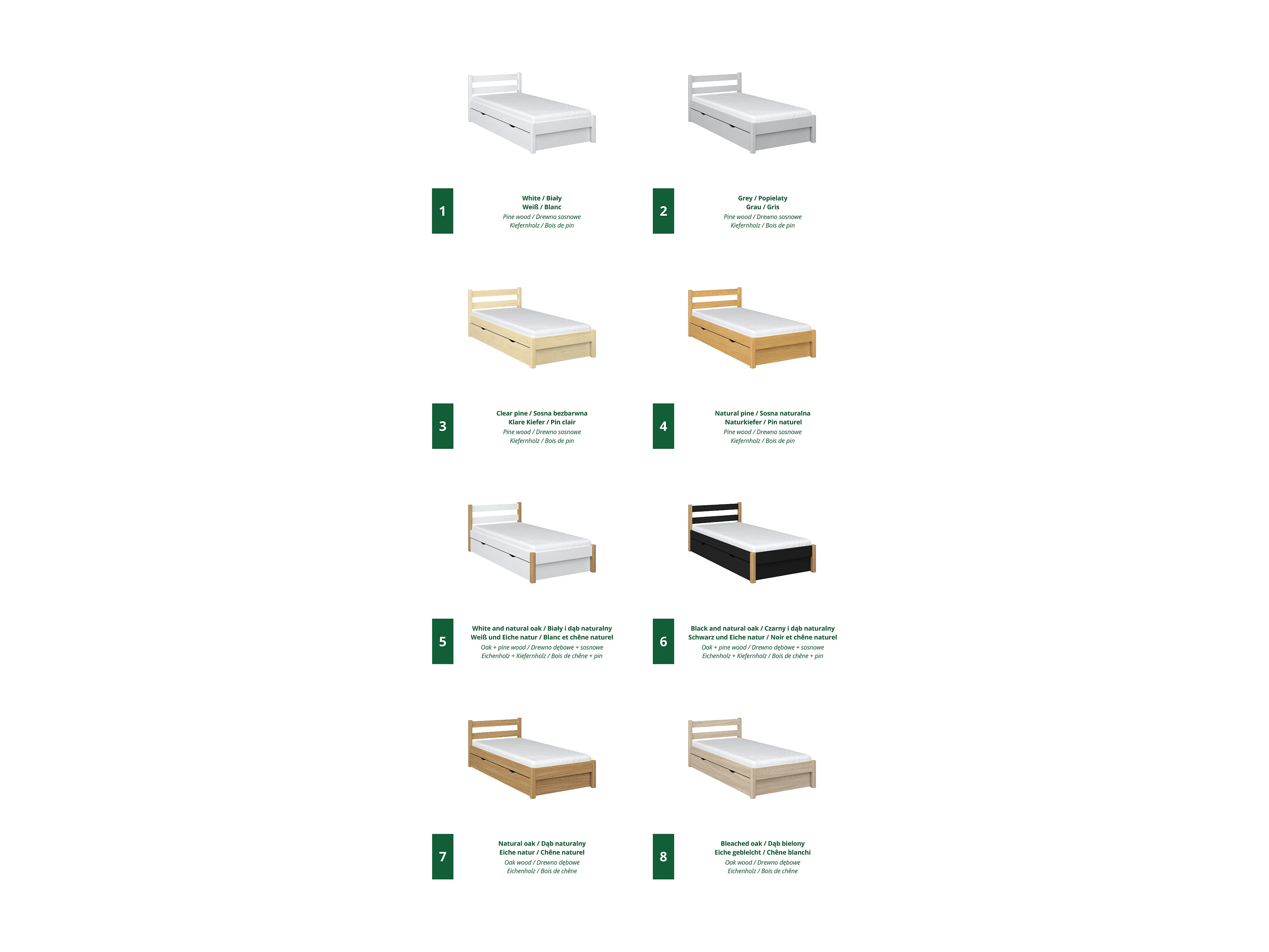 Lit simple en bois - avec tiroir N01 Pin Naturel 120x190