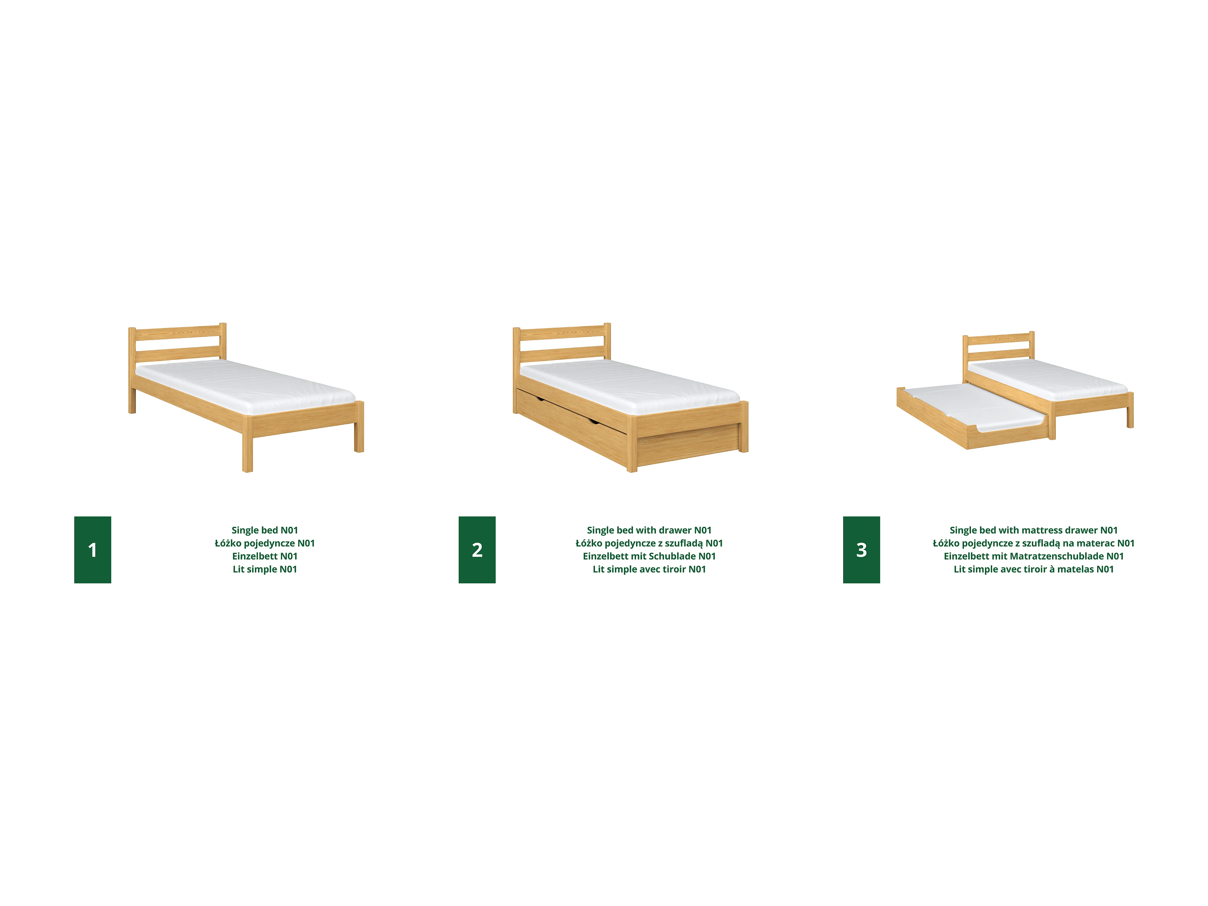 Lit simple en bois - avec tiroir N01 Pin Naturel 80x200
