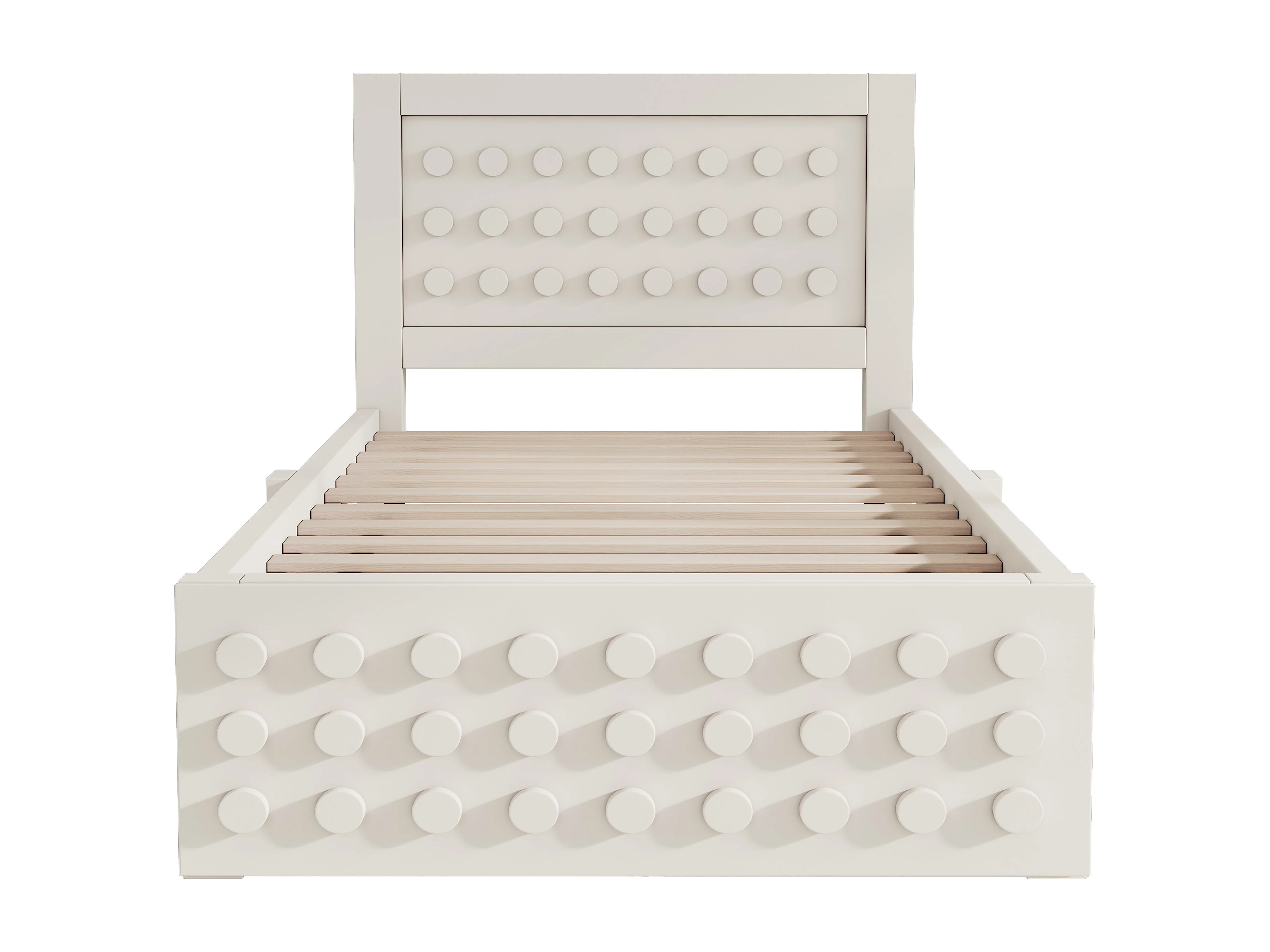 Lit simple en bois blanc 90x200 cm, lit enfant, design en blocs, tiroirs, espace de rangement, sans matelas