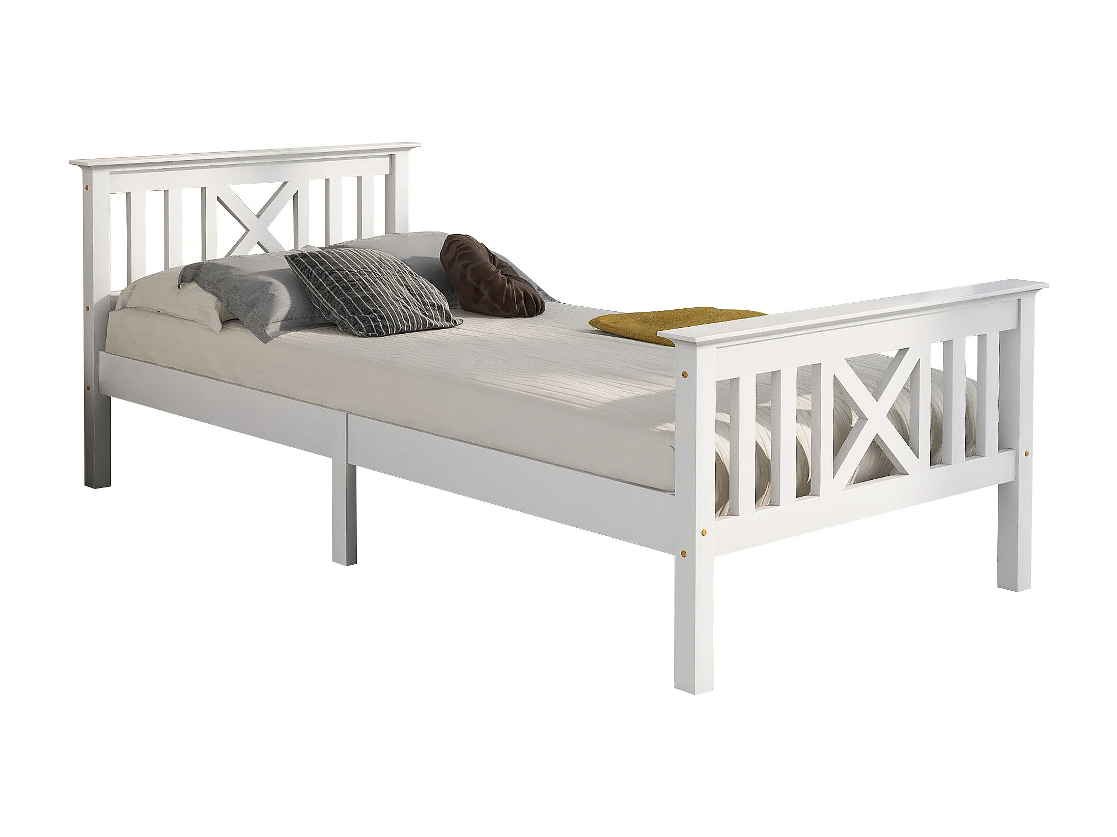 Lit simple en bois massif 90×200 cm avec tête de lit et sommier, pin blanc, solide et confortable