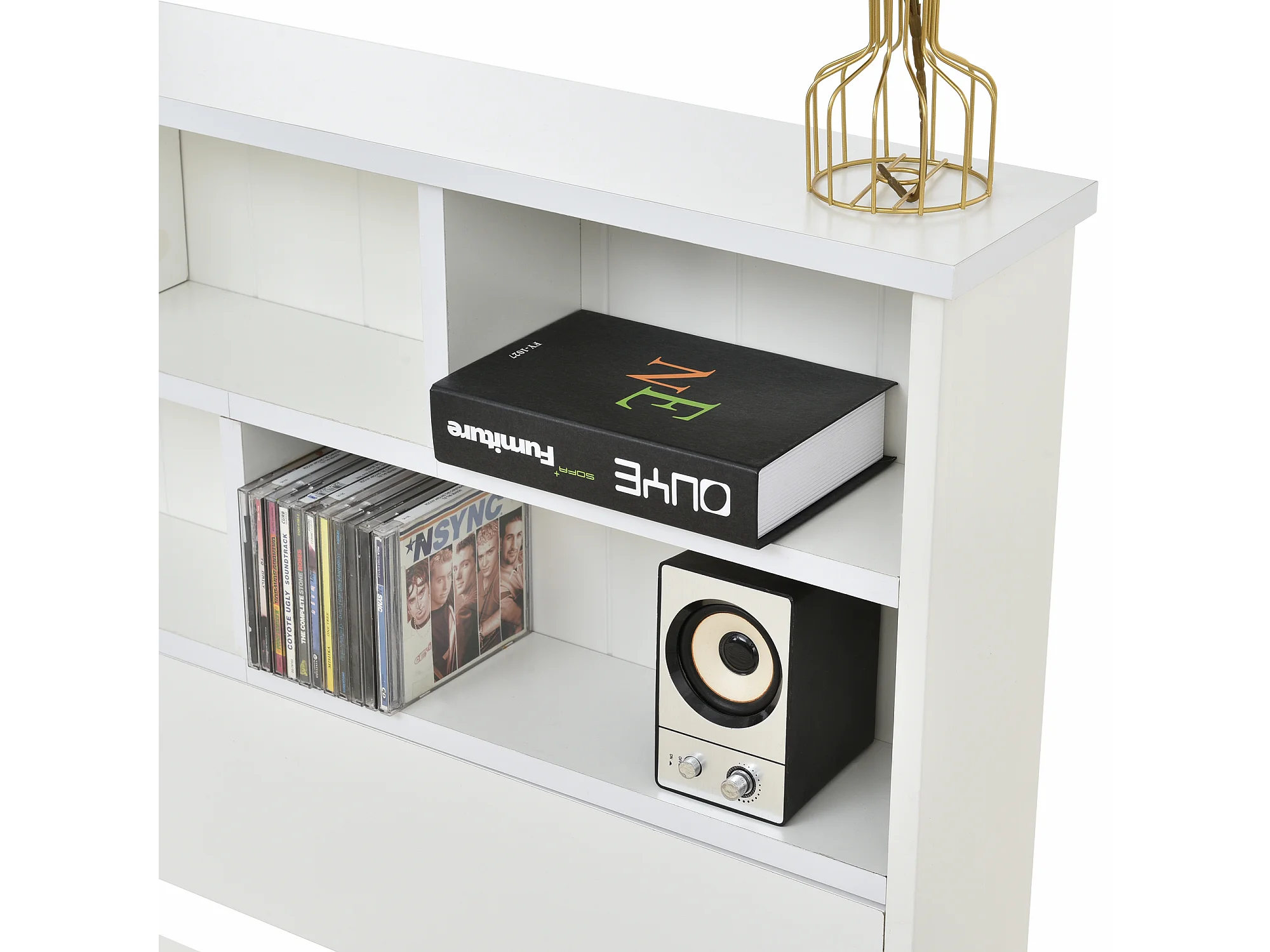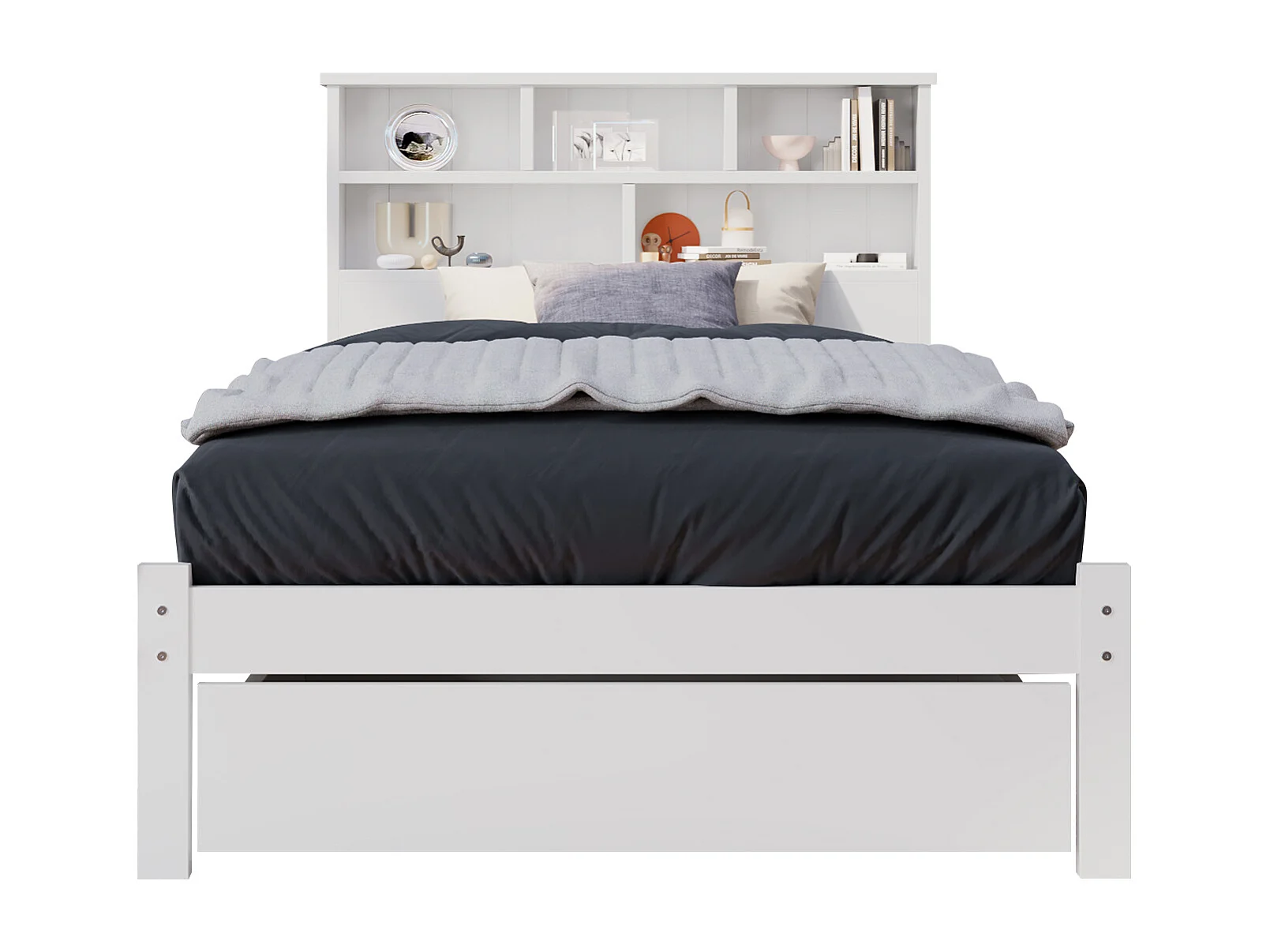 Lit simple en bois massif 90×200 cm avec tiroirs et étagère, adapté adultes et enfants, blanc