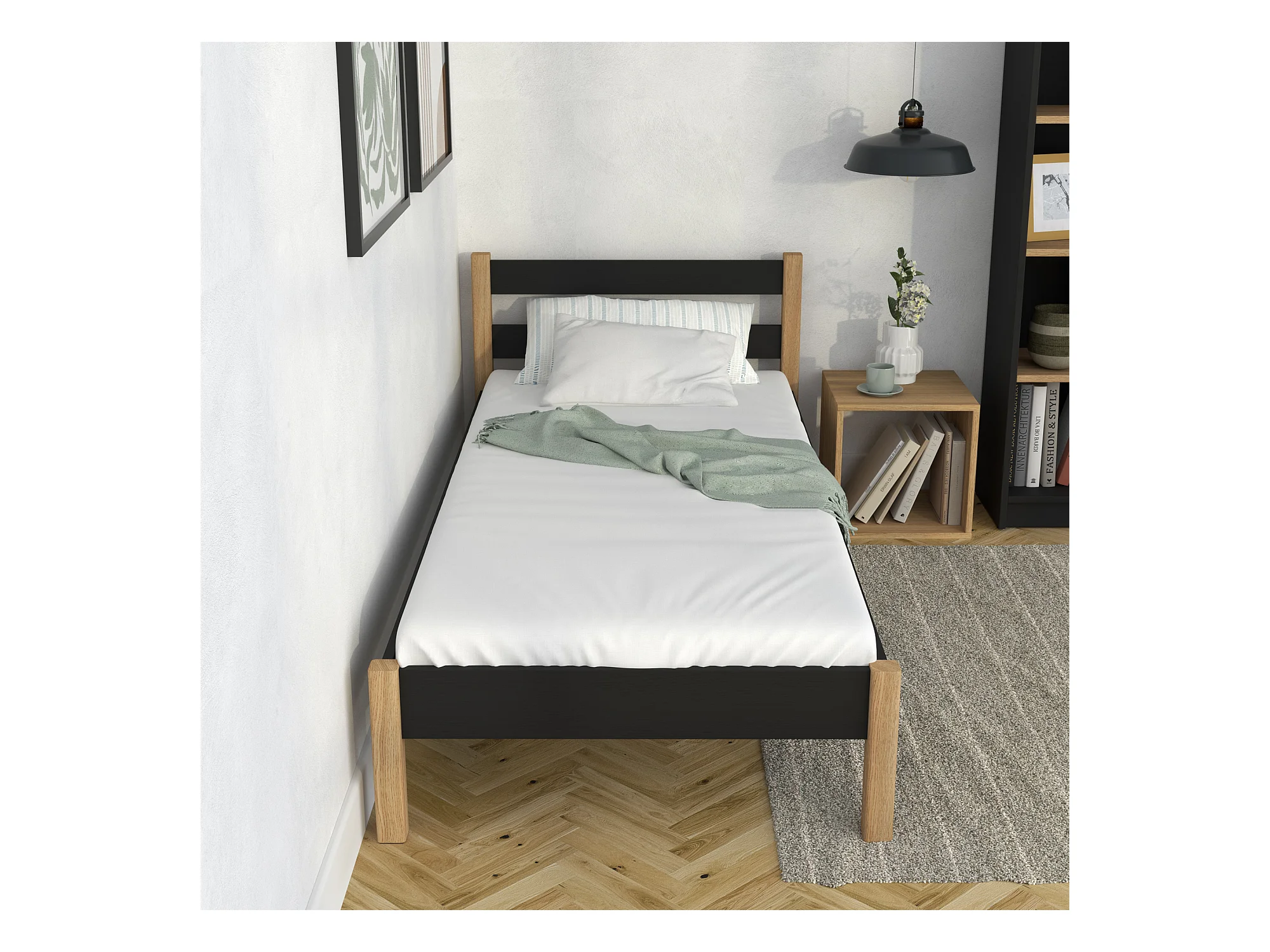 Lit simple en bois N01 Noir / Chêne Naturel 90x190