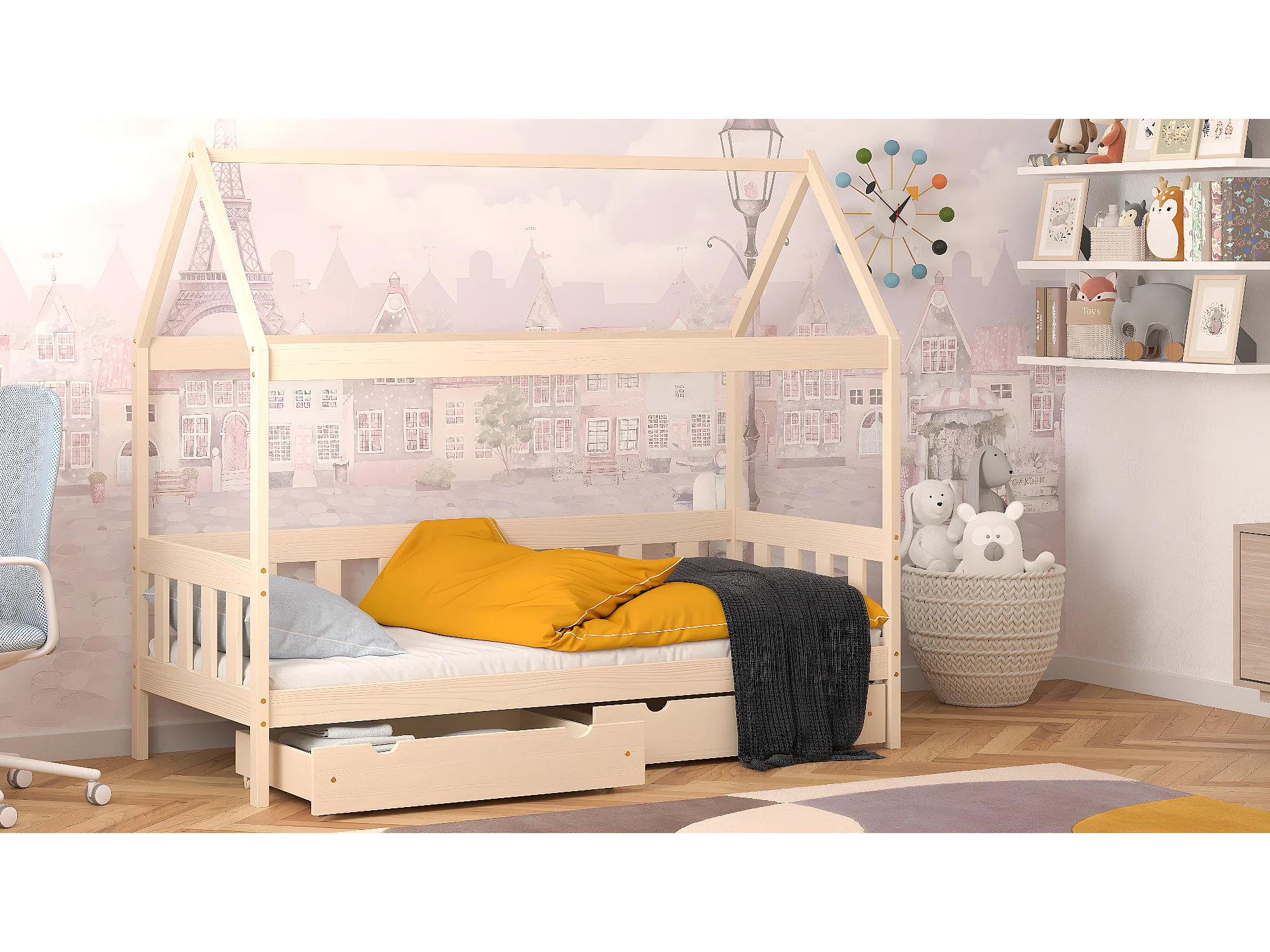 Lit simple en pin massif 190x80 vanille