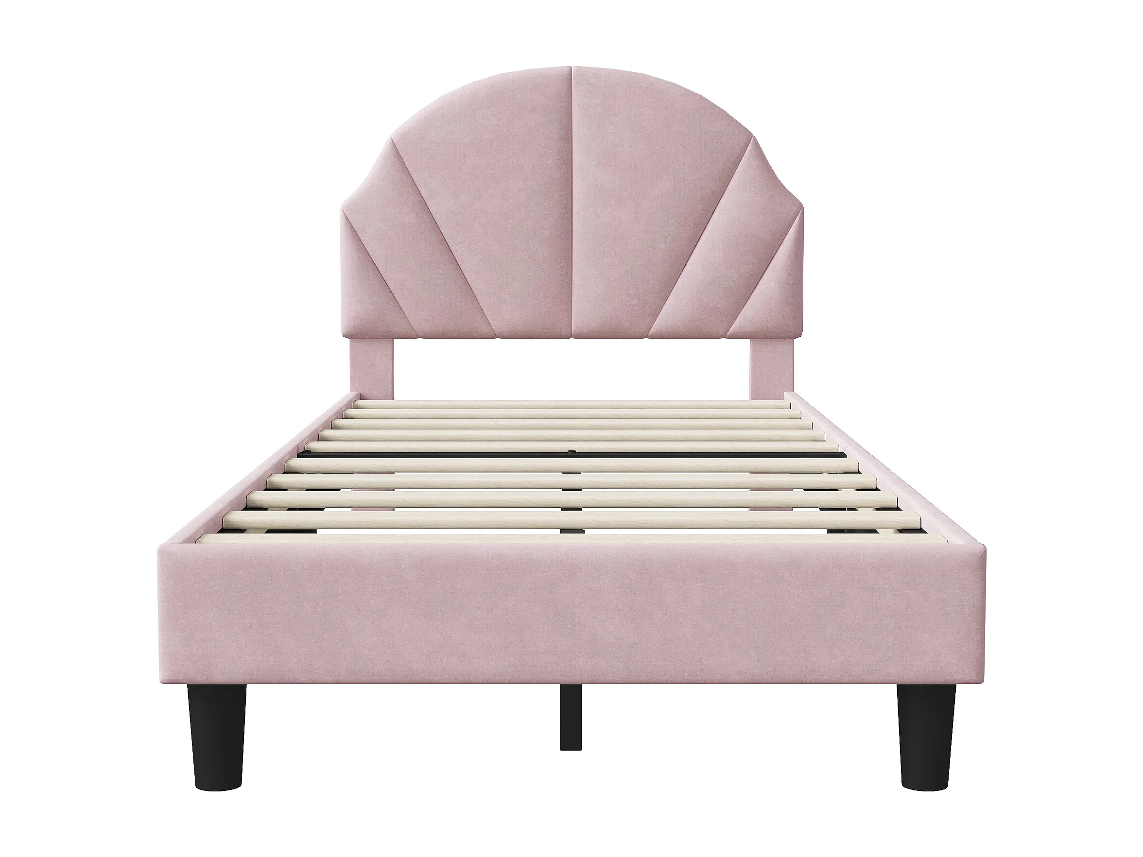 Lit simple enfant 90 x 200 cm - tête de lit en forme de nuage - hauteur de tête de lit réglable - velours - rose