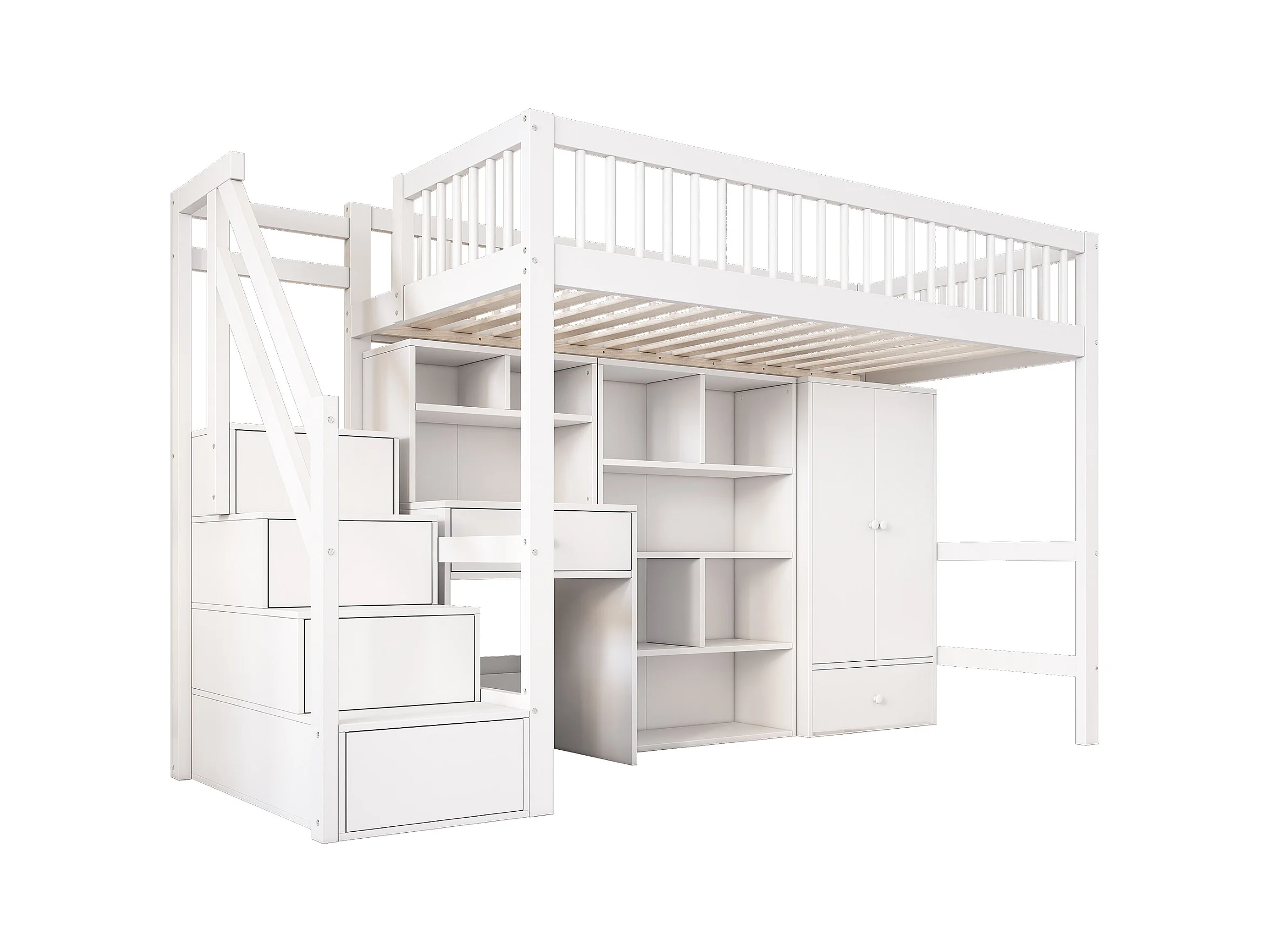 Lit d'enfant 90*200 cm, avec bureau + escalier + casier + armoire, bois massif + MDF, blanc