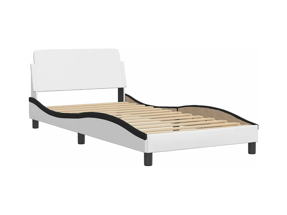 Lit simple et tête de lit blanc et noir 100x200 cm similicuir FR86530