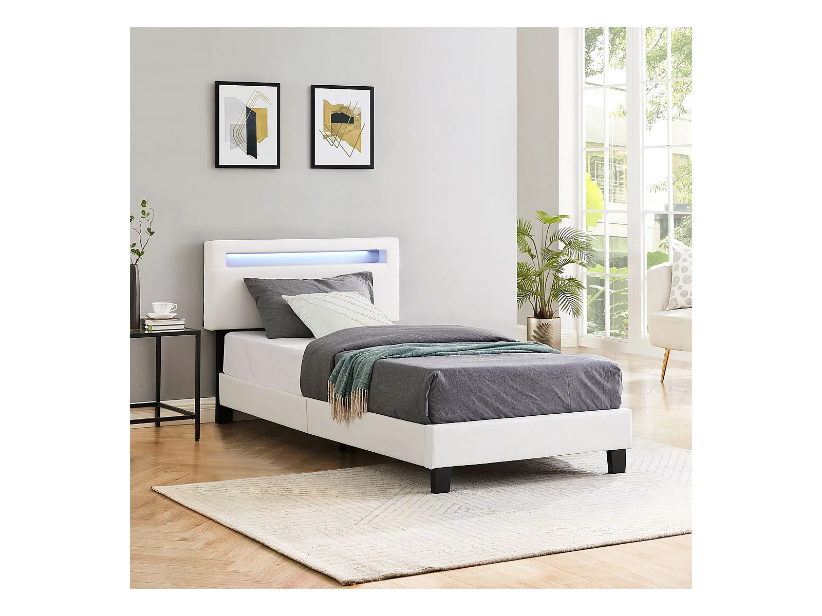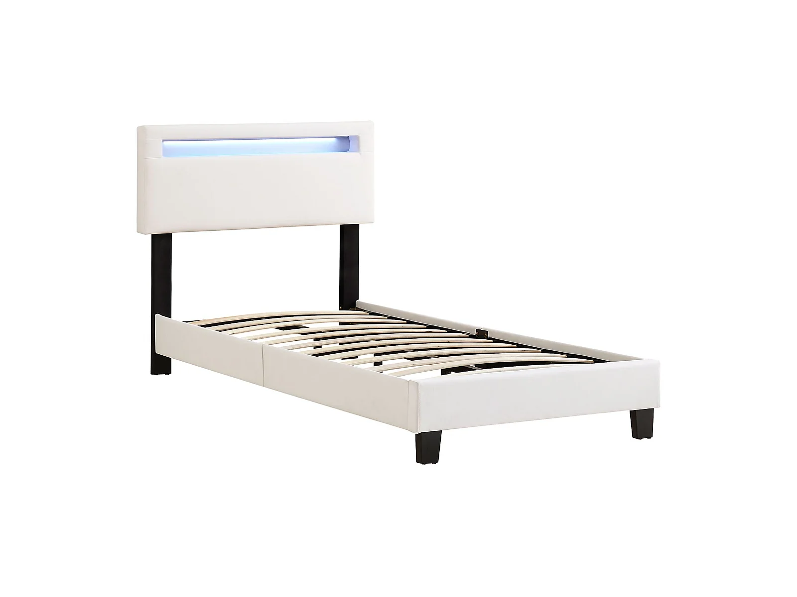 Lit LED simple 90x190 cm avec sommier, tête de lit réglable en hauteur, en synthétique blanc, EVAN