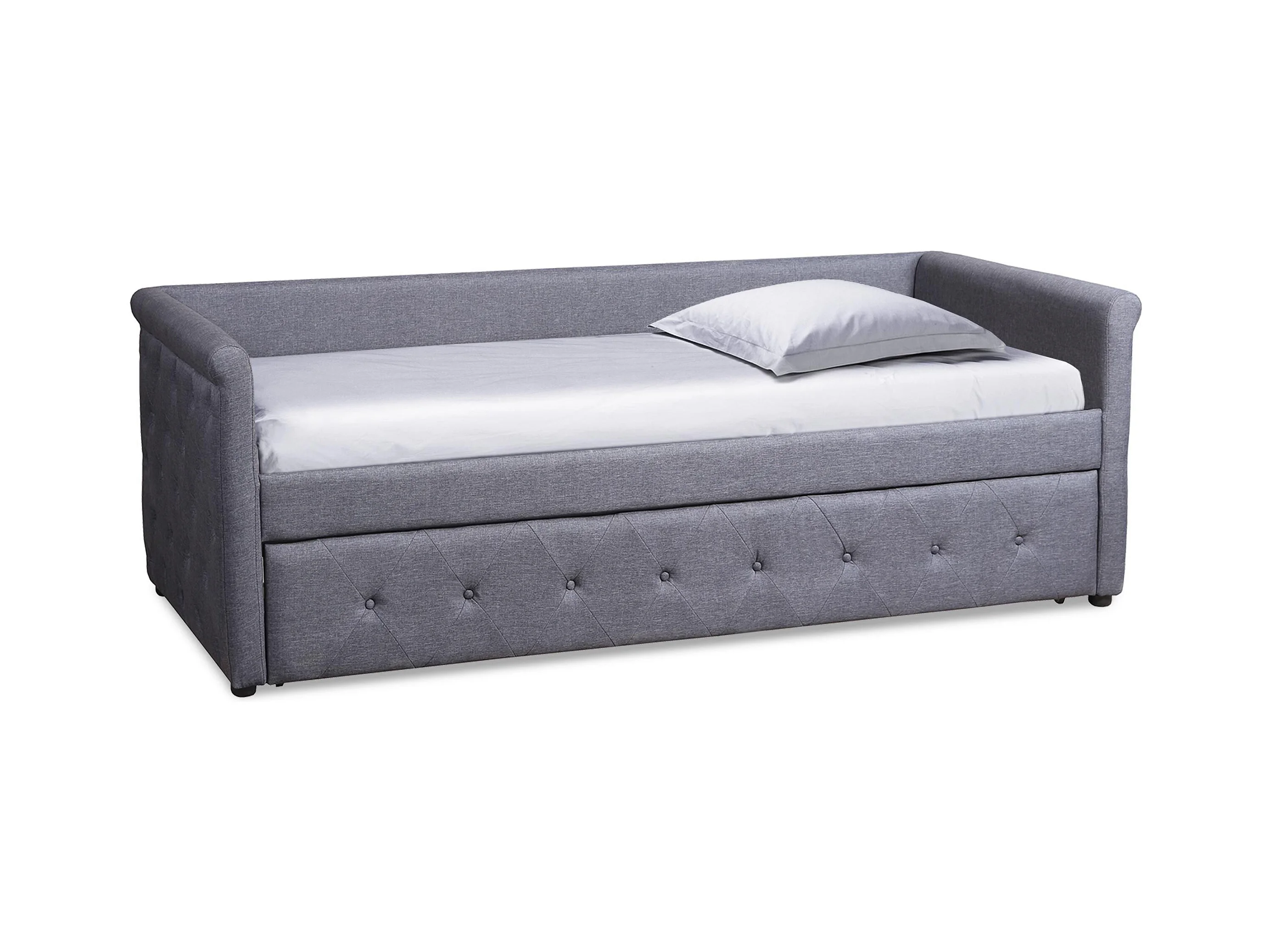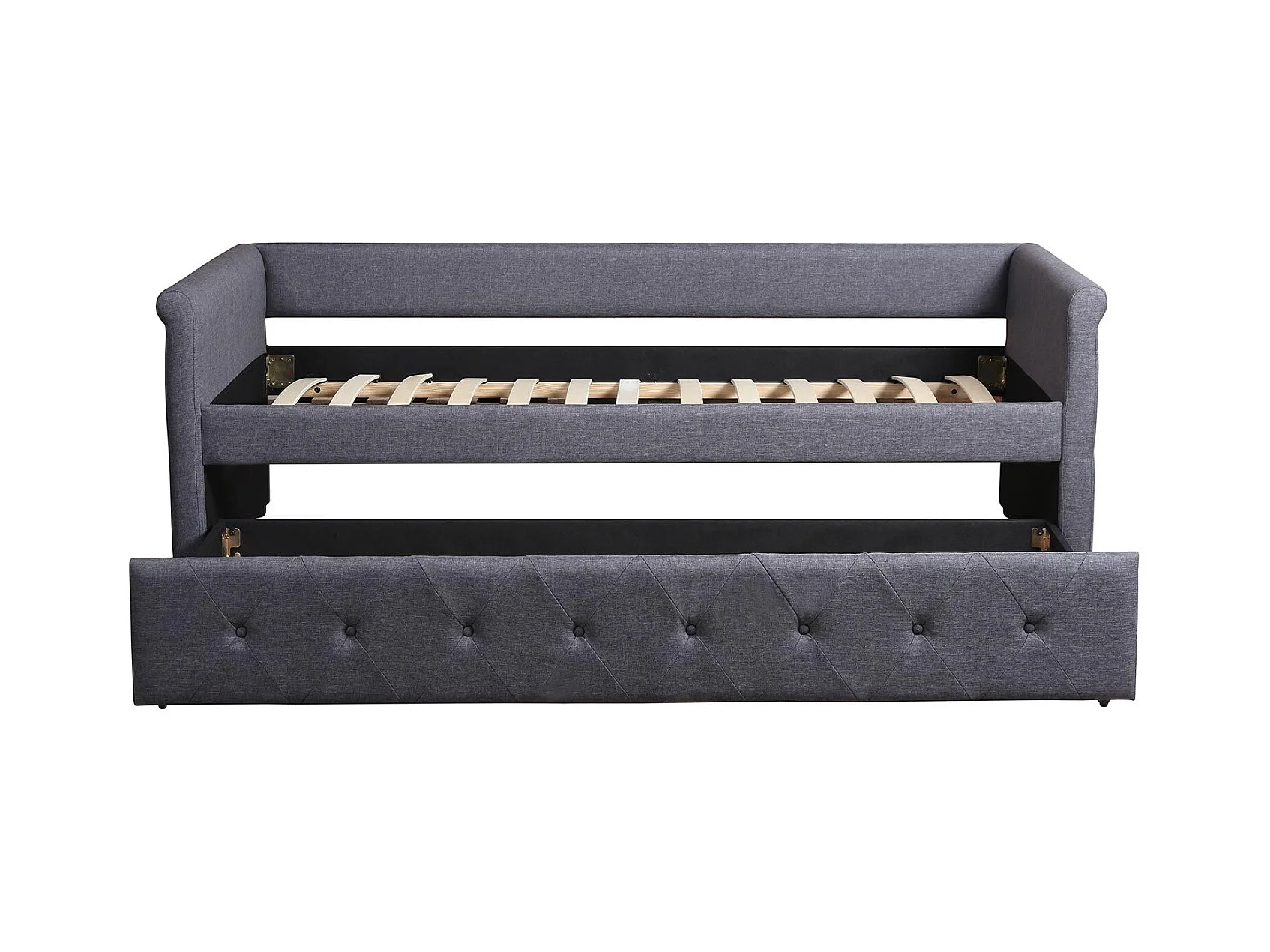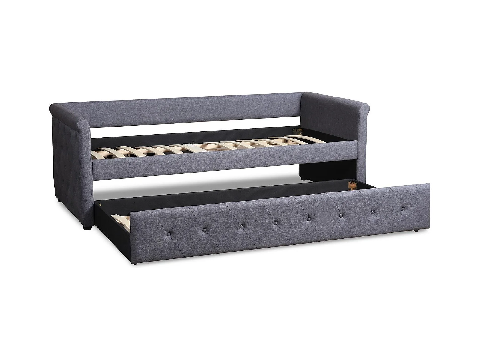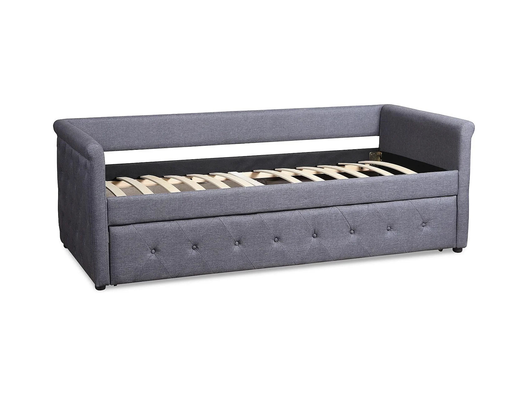 Lit Gigogne Capitonné "Antille" 90x190cm Gris