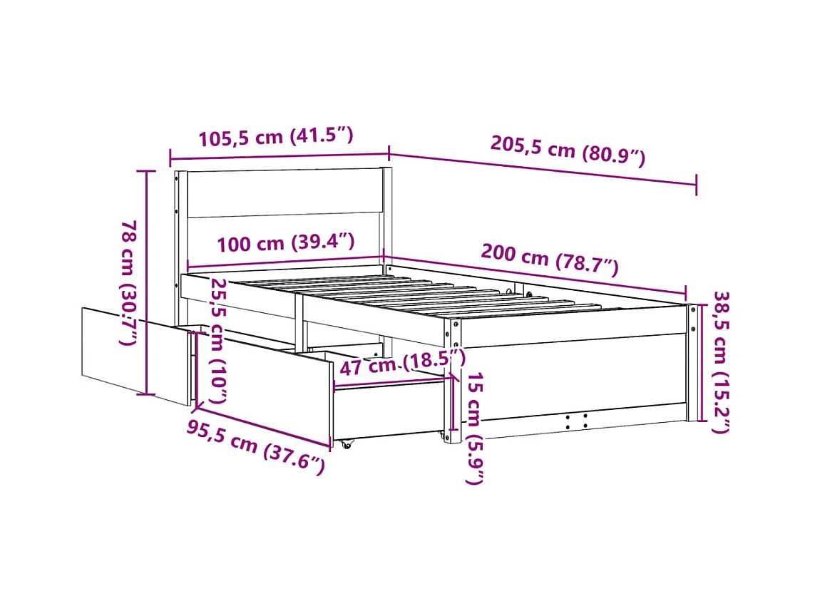 Lit simple | Lit adulte, enfant | Cadre de lit 100x200 cm bois massif de pin