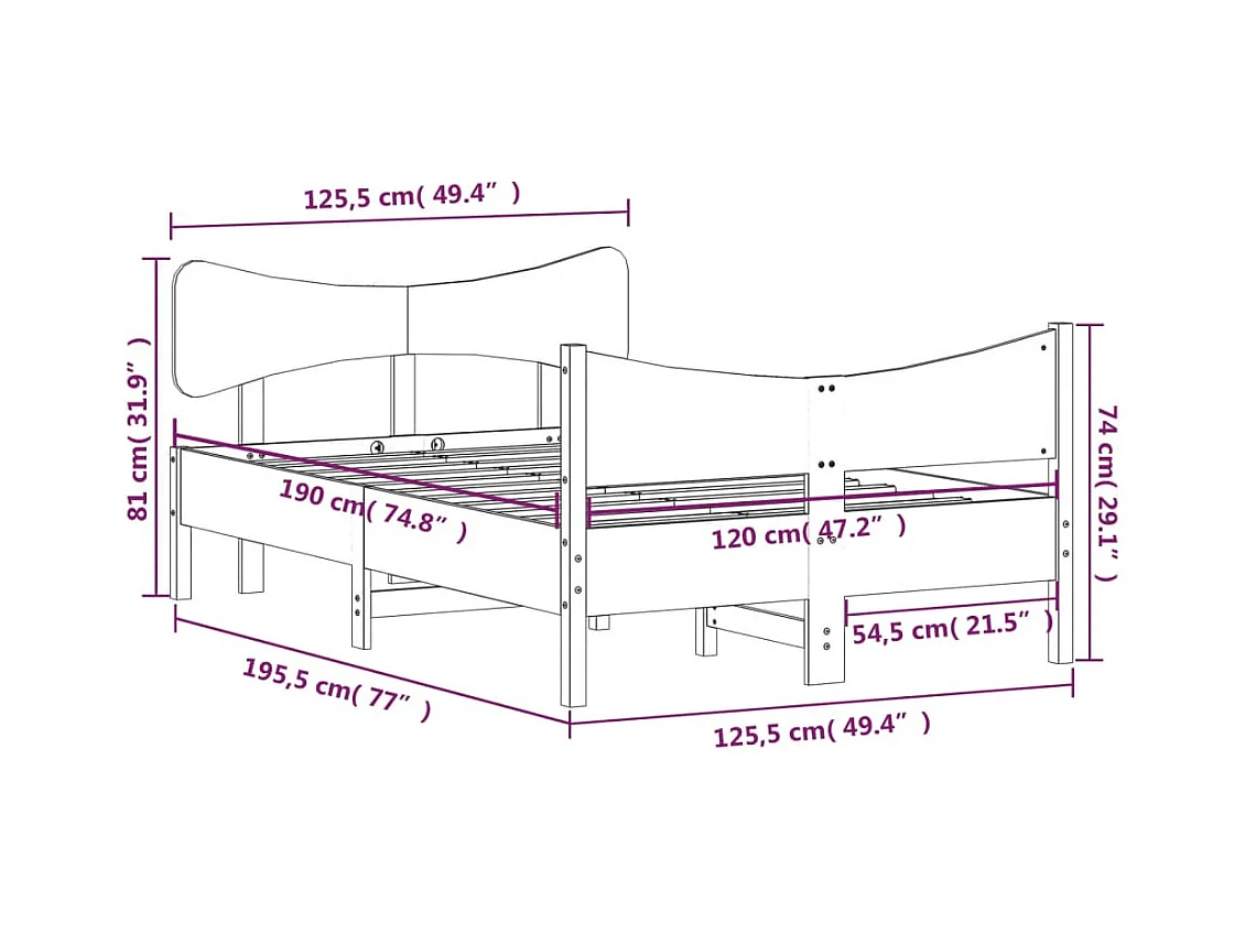 Lit simple | Lit adulte, enfant | Cadre de lit 120x190 cm bois de pin massif