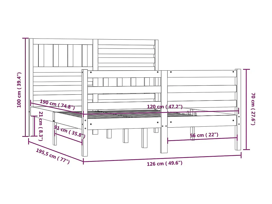 Lit simple | Lit adulte, enfant | Cadre de lit 120x190 cm Petit double Bois massif