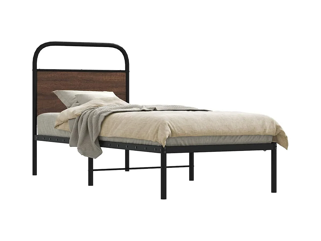 Cadre de lit en métal sans matelas chêne marron 75x190 cm