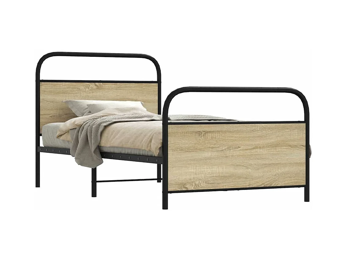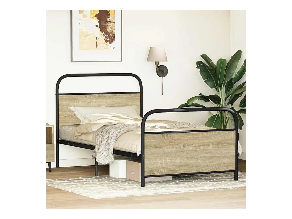 Lit simple | Lit adulte, enfant | Cadre de lit en métal chêne sonoma 90x190 cm