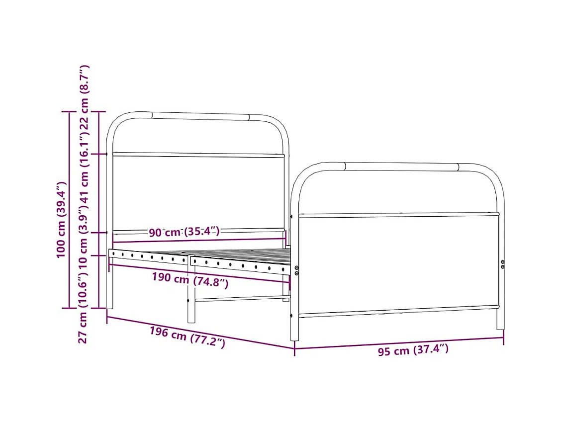 Lit simple | Lit adulte, enfant | Cadre de lit en métal chêne sonoma 100x190 cm