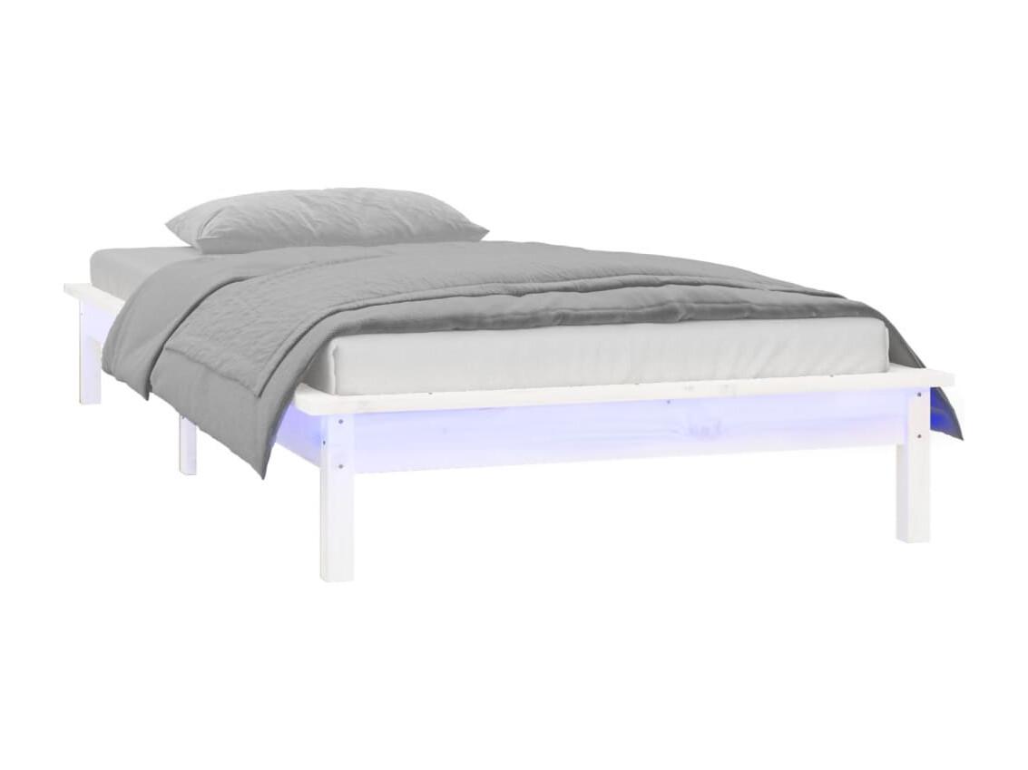 Lit simple | Lit adulte, enfant | Cadre de lit à LED blanc 75x190 cm bois massif