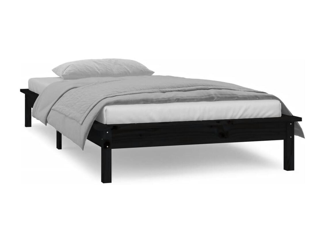 Lit simple | Lit adulte, enfant | Cadre de lit à LED noir 75x190 cm bois massif