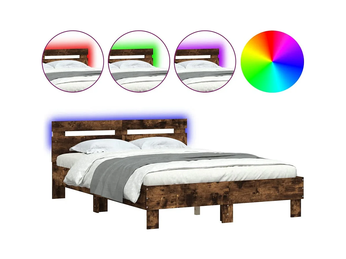 Lit simple | Lit adulte, enfant | Cadre de lit avec LED chêne fumé 120x200 cm